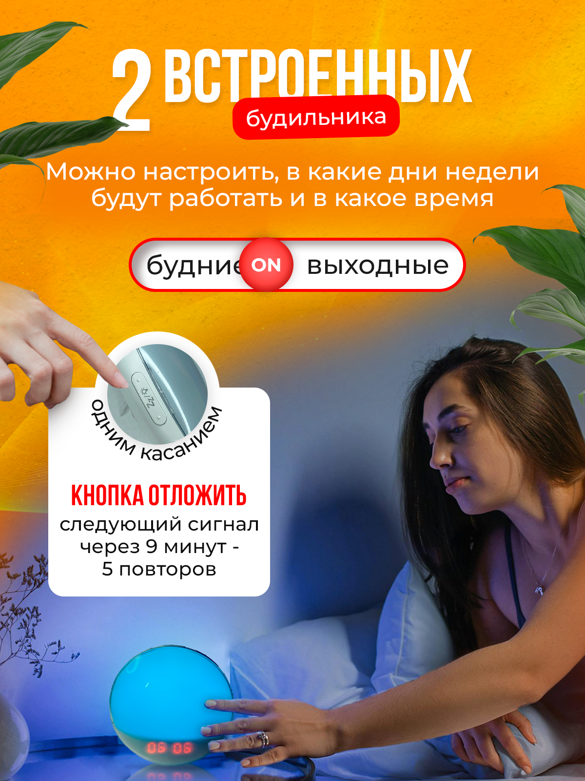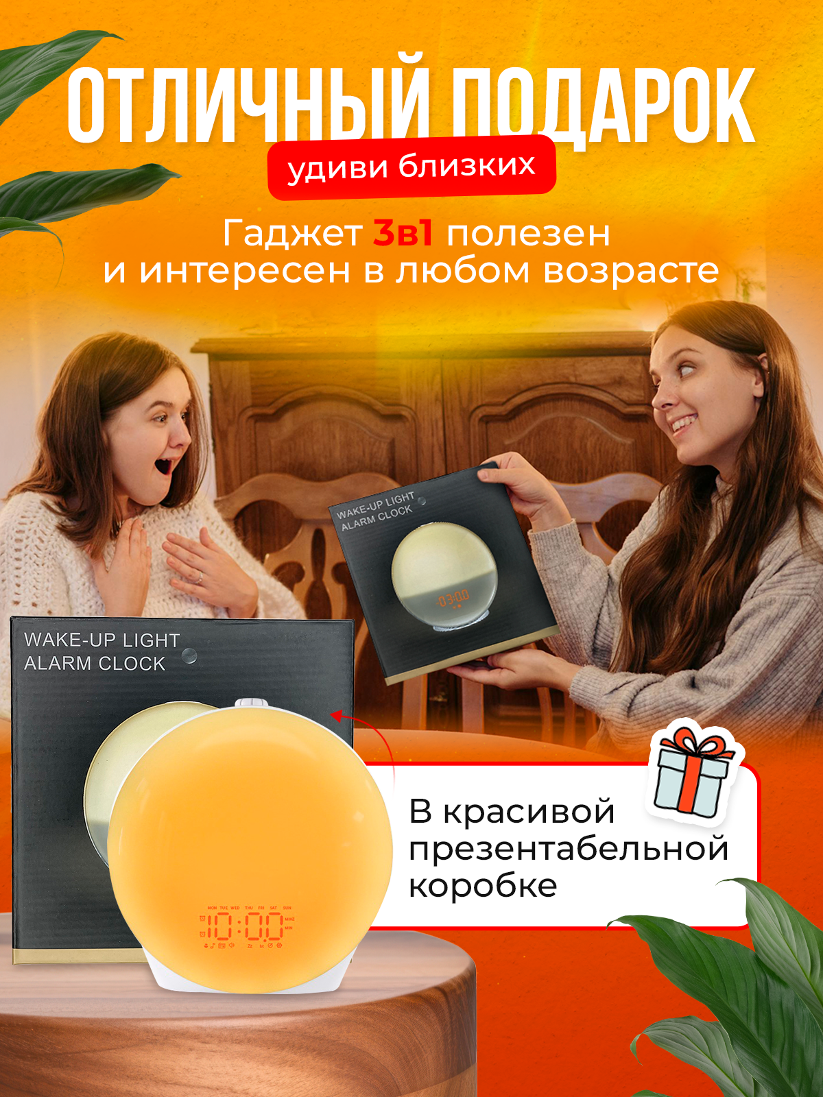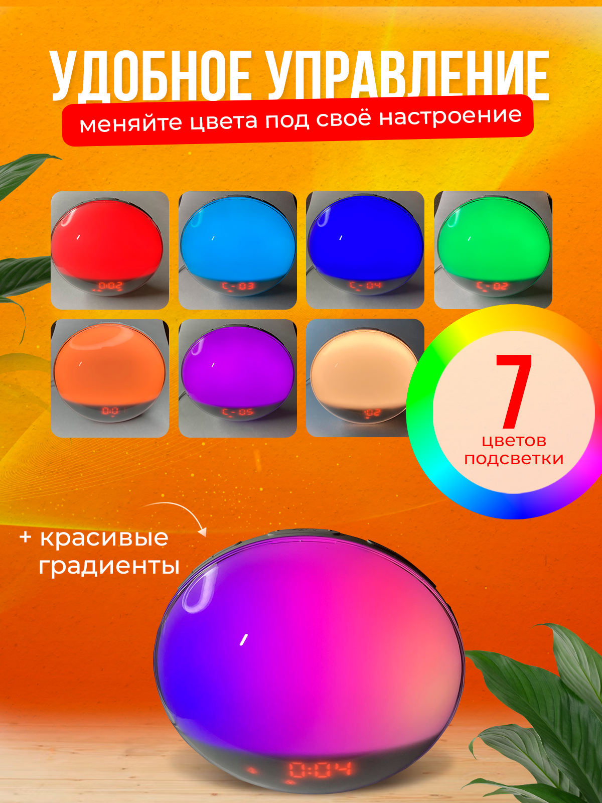 Будильник TAYMLUX электронные часы, ночник умный, настольный, световой с имитацией рассвета с FM радио, светильник закат интересное: