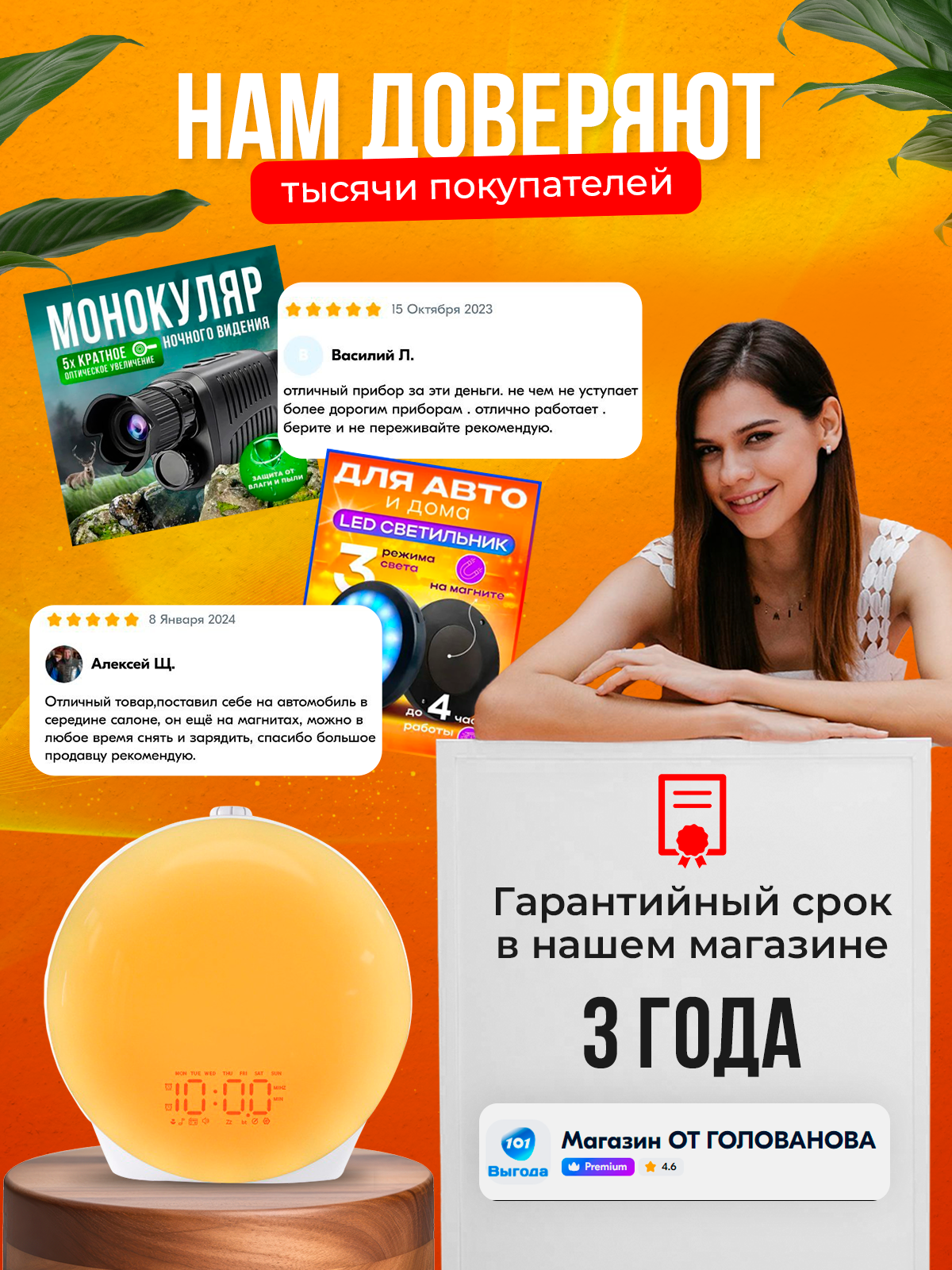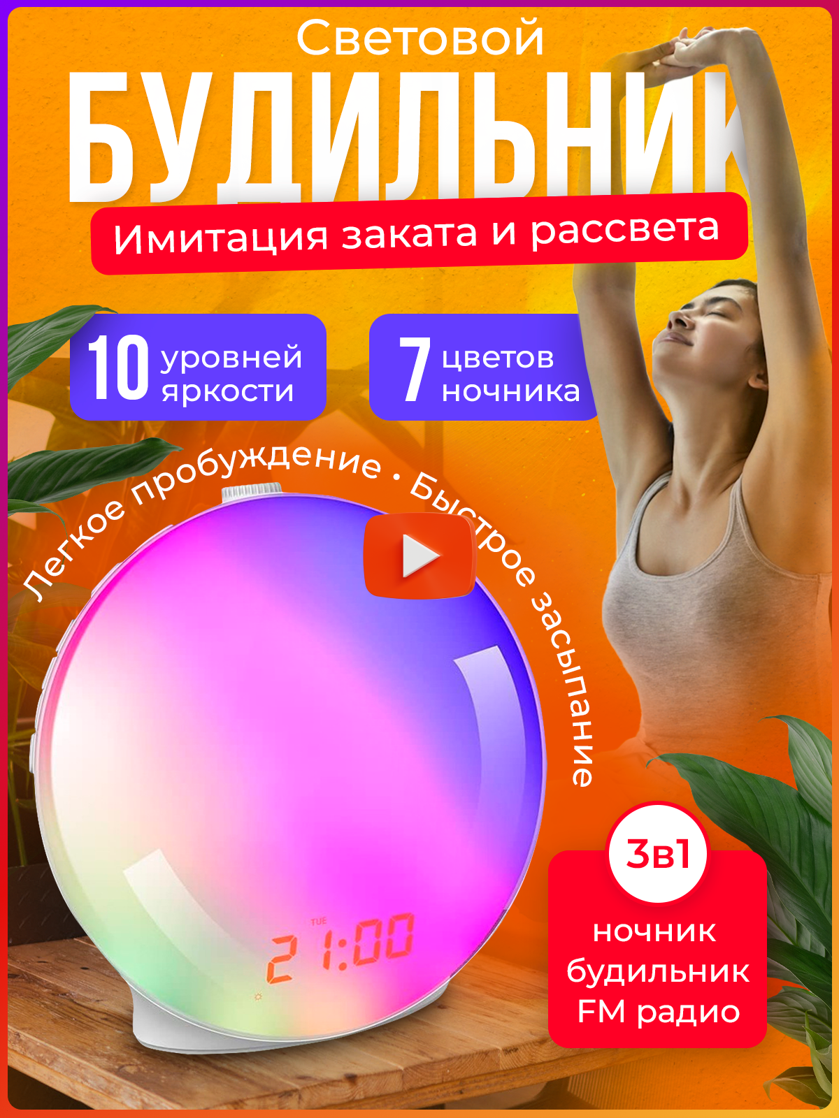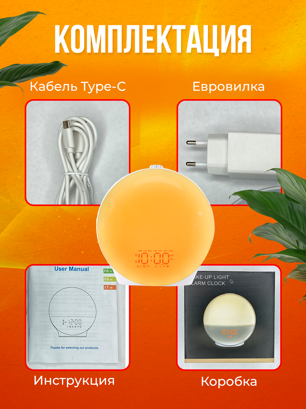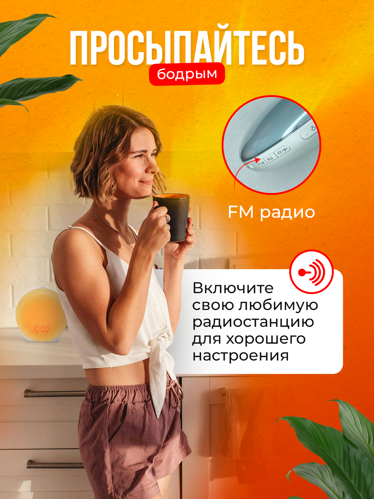 Будильник TAYMLUX электронные часы, ночник умный, настольный, световой с имитацией рассвета с FM радио, светильник закат интересное: