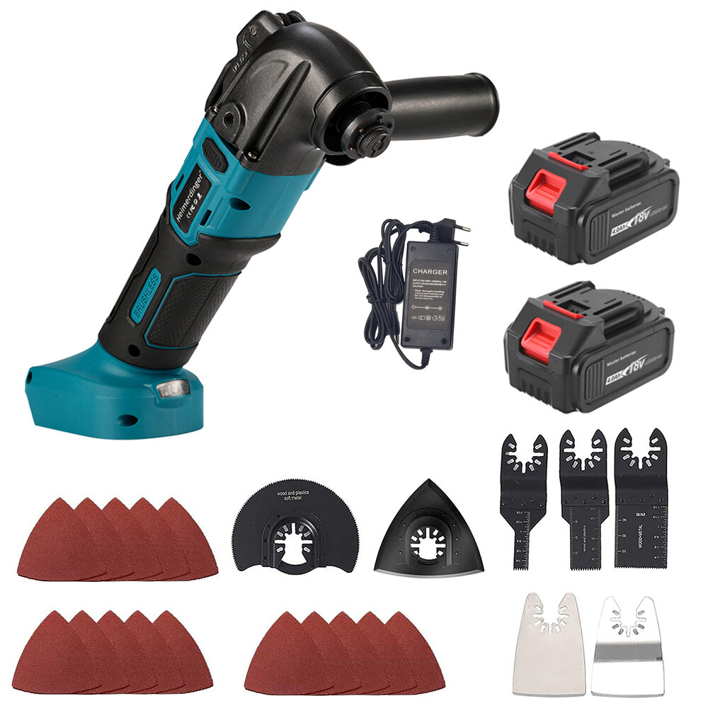 Купить Беспроводной бесщеточный осциллирующий многофункциональный деревообрабатывающий инструмент Heimerdinger 18 В, с двумя батареями емкостью 4,0 Ач