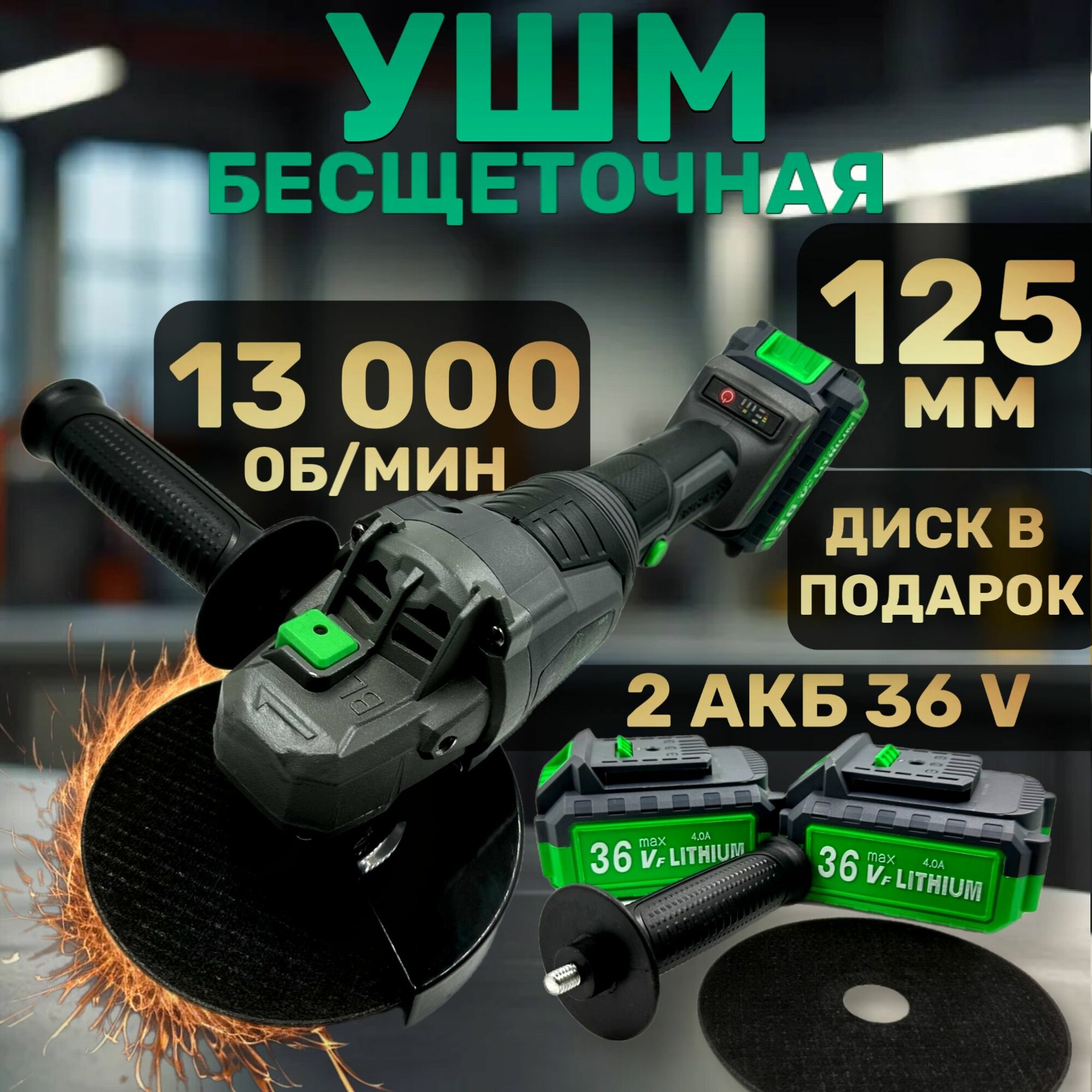 Угловая шлифовальная машина(УШМ, болгарка) аккумуляторная бесщеточная 125мм,36 В, 13000 об/мин,2 АКБ, по металлу, FANG TOOLS интересное: