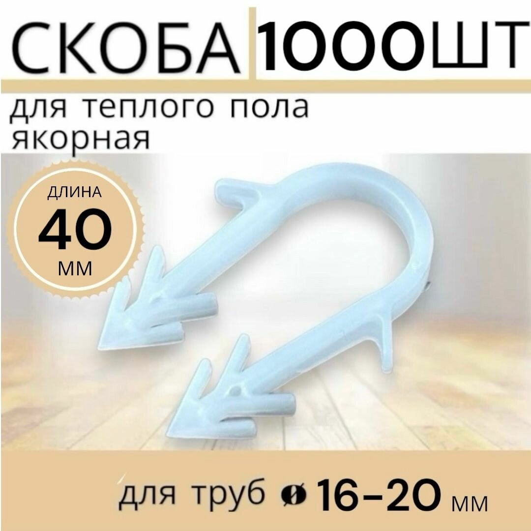 Скобы для теплого пола 16мм, 1000шт, якорные, белые