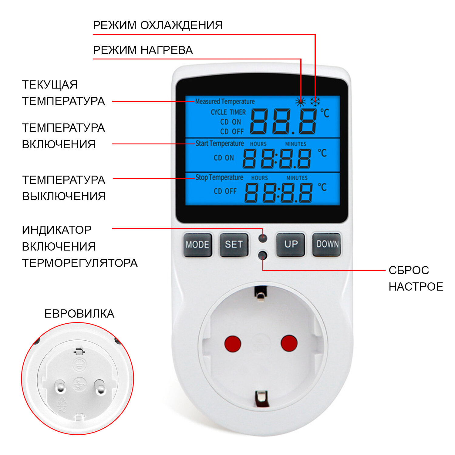 Купить Терморегулятор с таймером, датчиком температуры и подсветкой