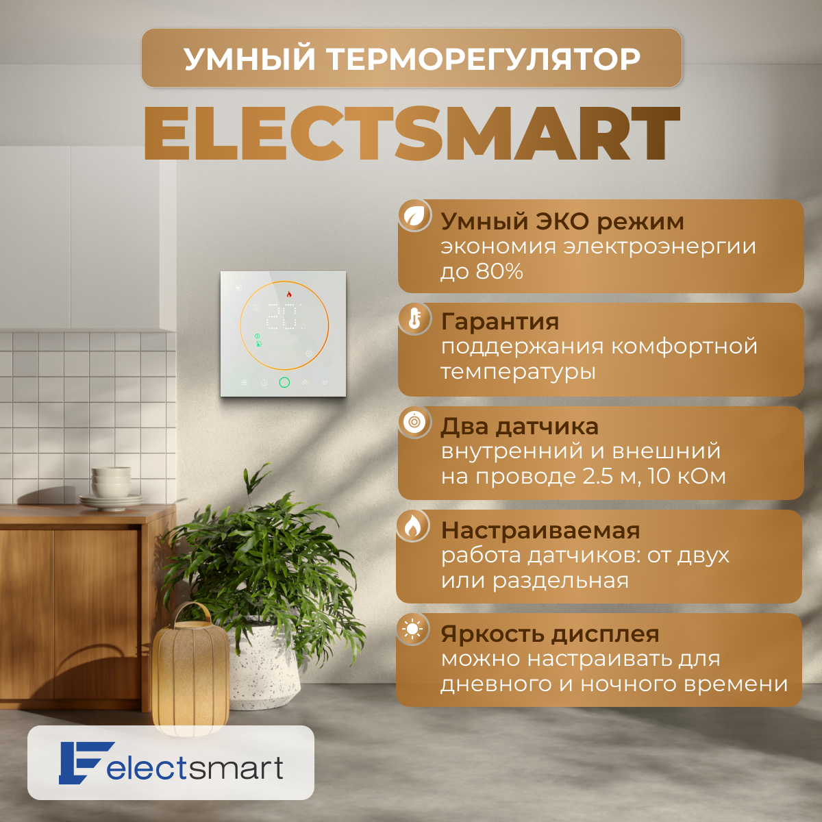 Купить ELECTSMART EST-710-YM Терморегулятор/термостат для теплого пола / обогревателя программируемый, сенсорное управление, белый