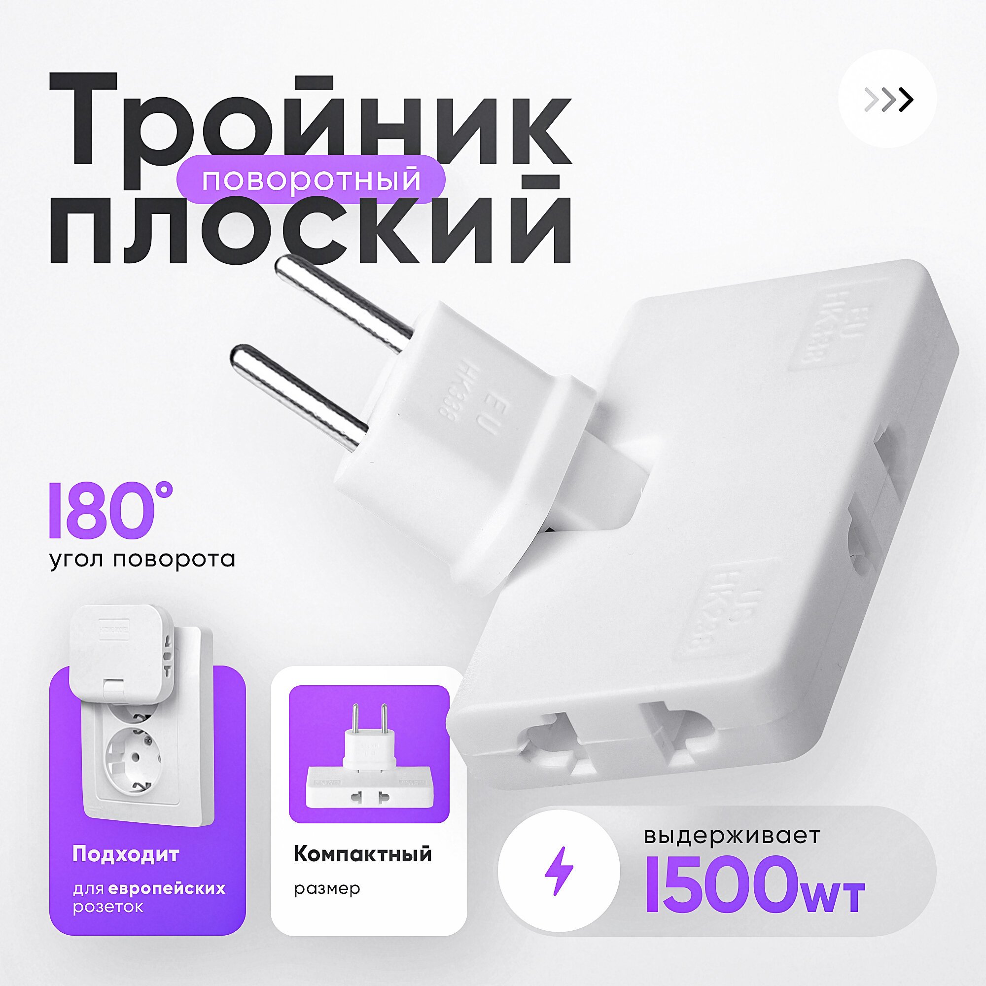 Купить idealim electro / ⚡️ Плоский поворотный тройник для розетки / разветвитель электрический / маленький тройник белый