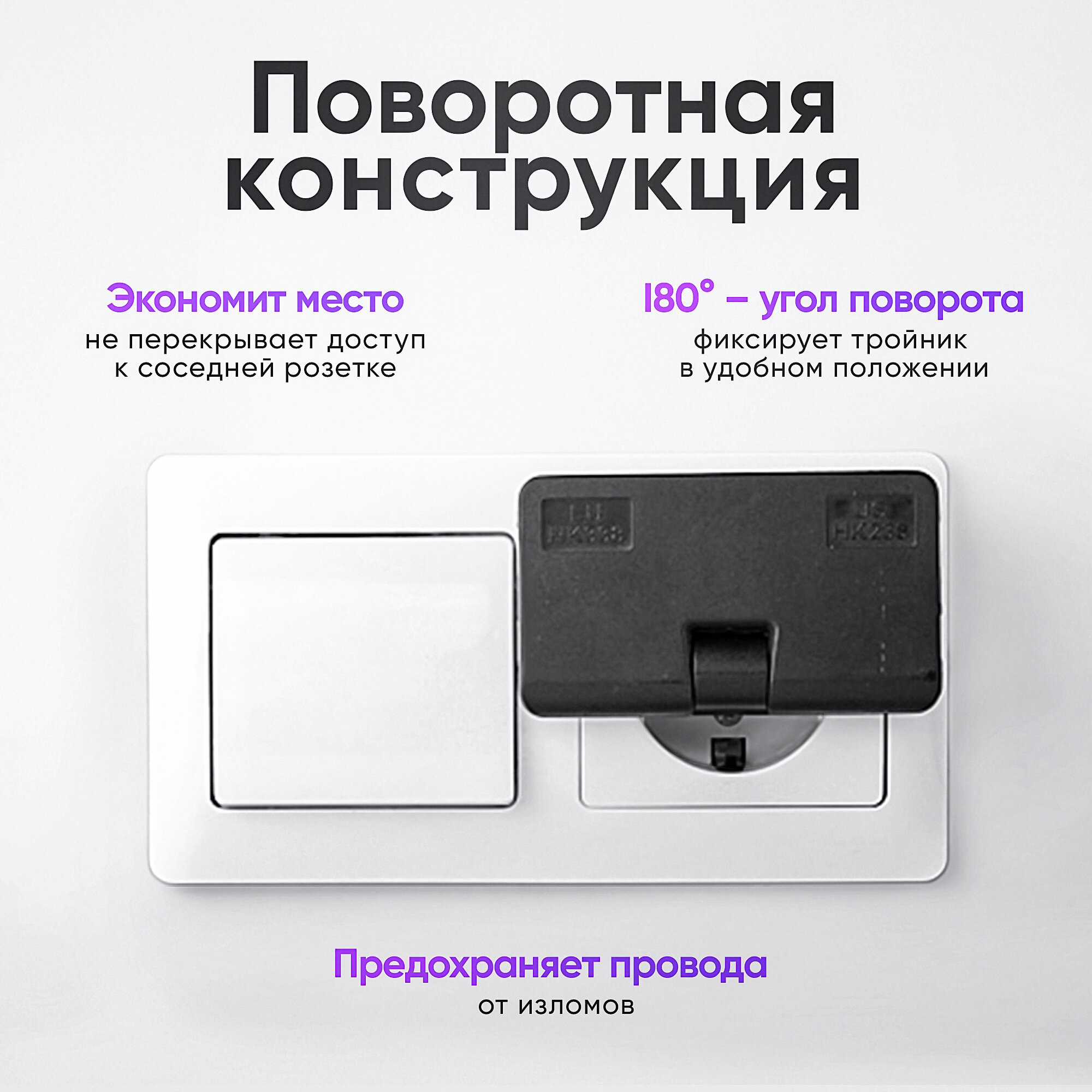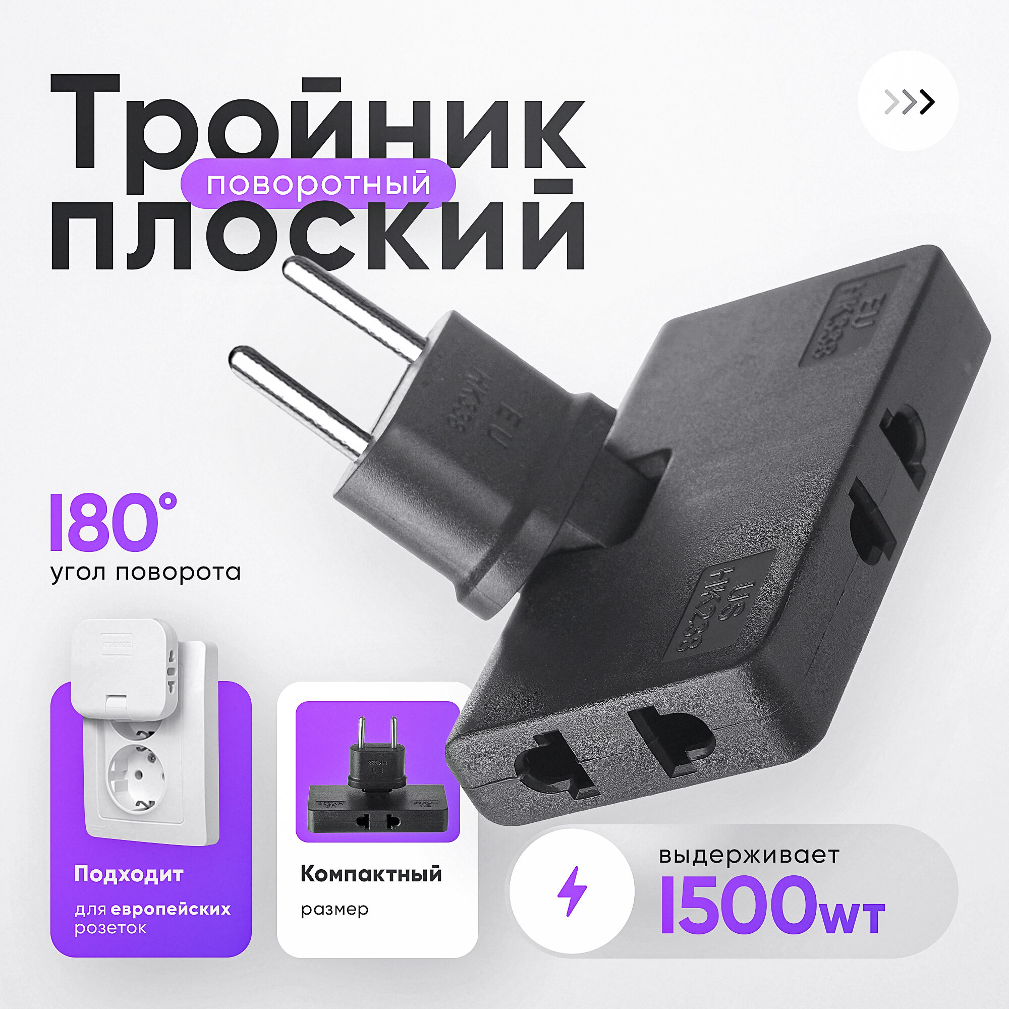 Idealim electro / Плоский поворотный тройник для розетки / разветвитель электрический / маленький тройник черный интересное: