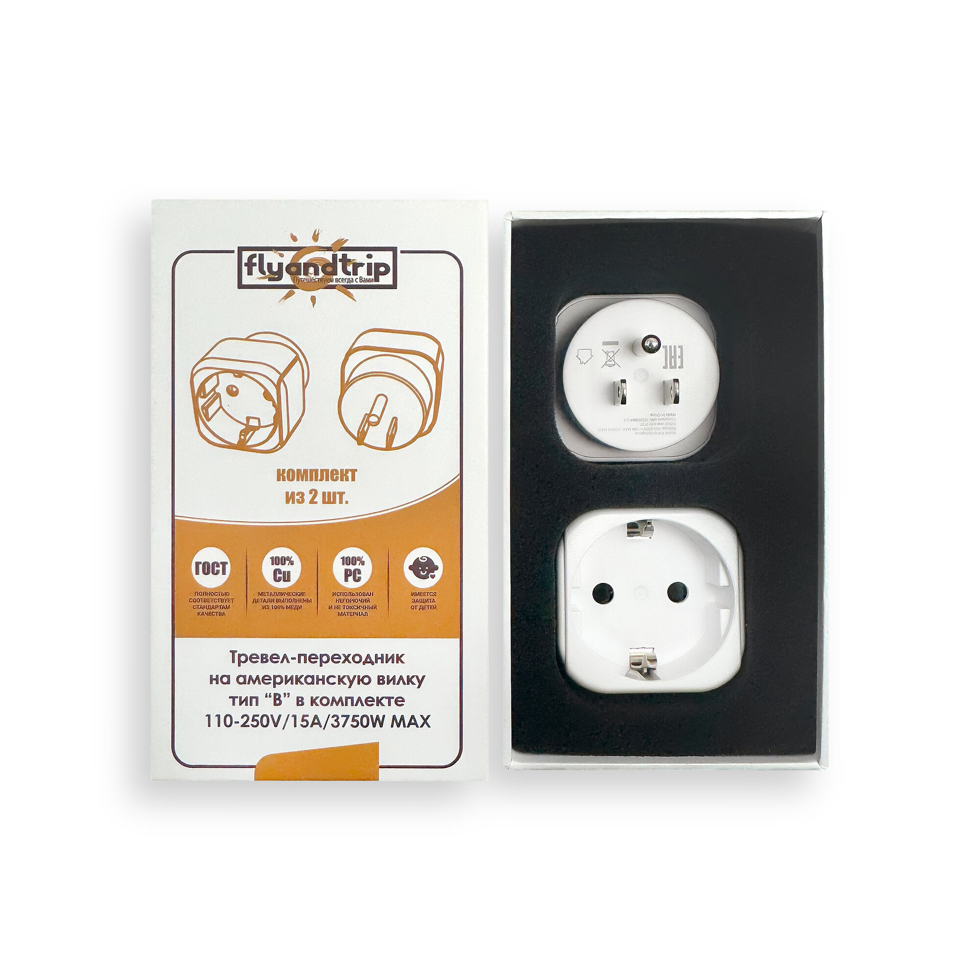 Купить Переходник Flyandtrip на американскую вилку тип B в комплекте 2 шт