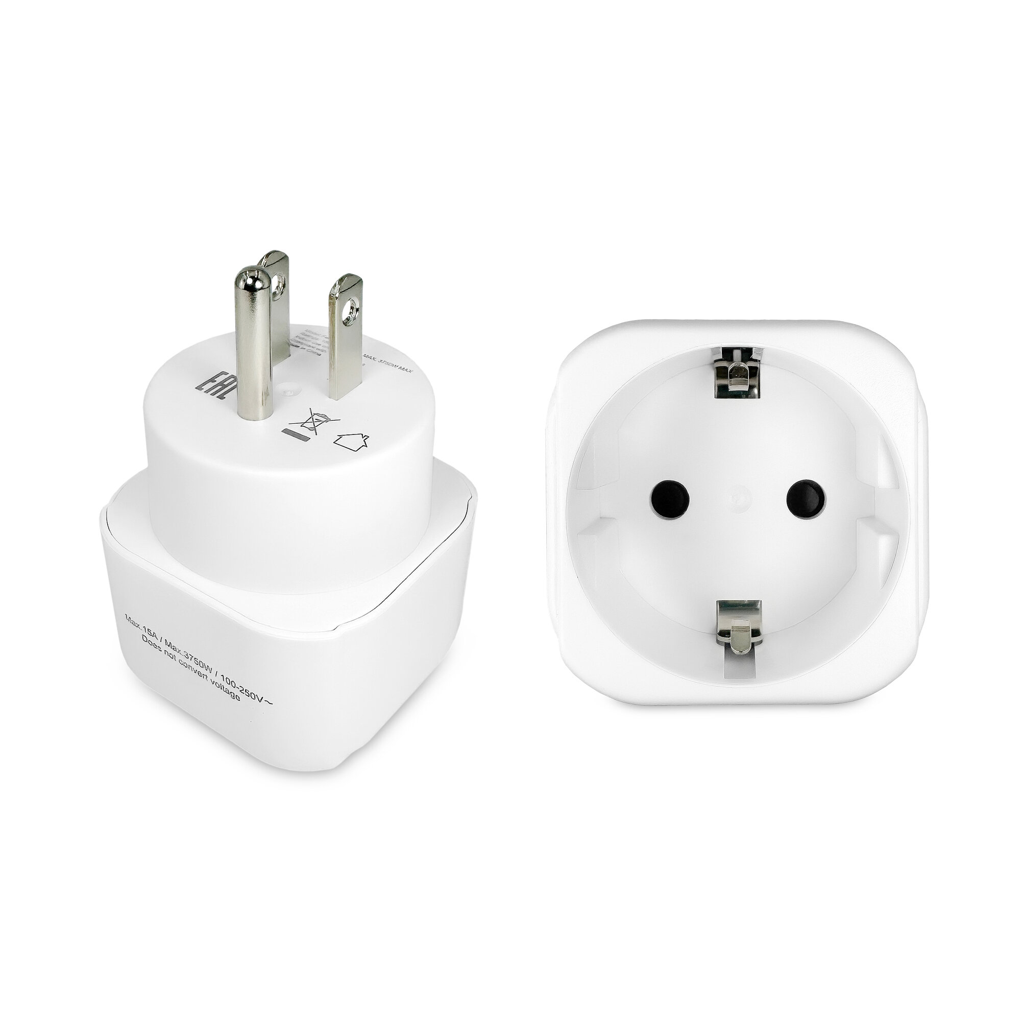 Адаптер сетевой на евровилку, евро розетку GSMIN Travel Adapter A34 переходник для американской, китайской вилки US/CN (250 В, 10А), 2шт (Белый)