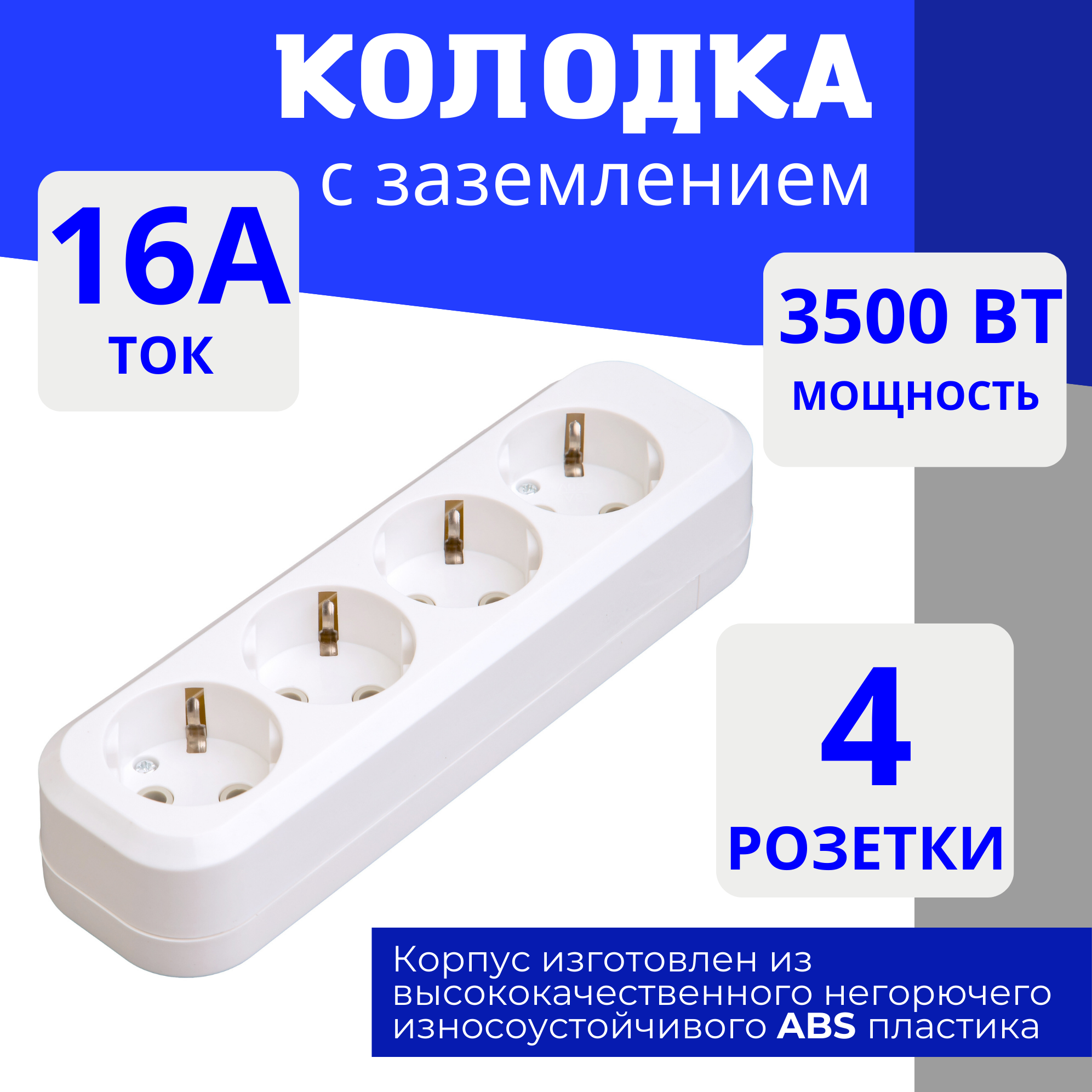 Купить Колодка для удлинителя на 4 розетки, с заземлением 220В 16А Elestarpro