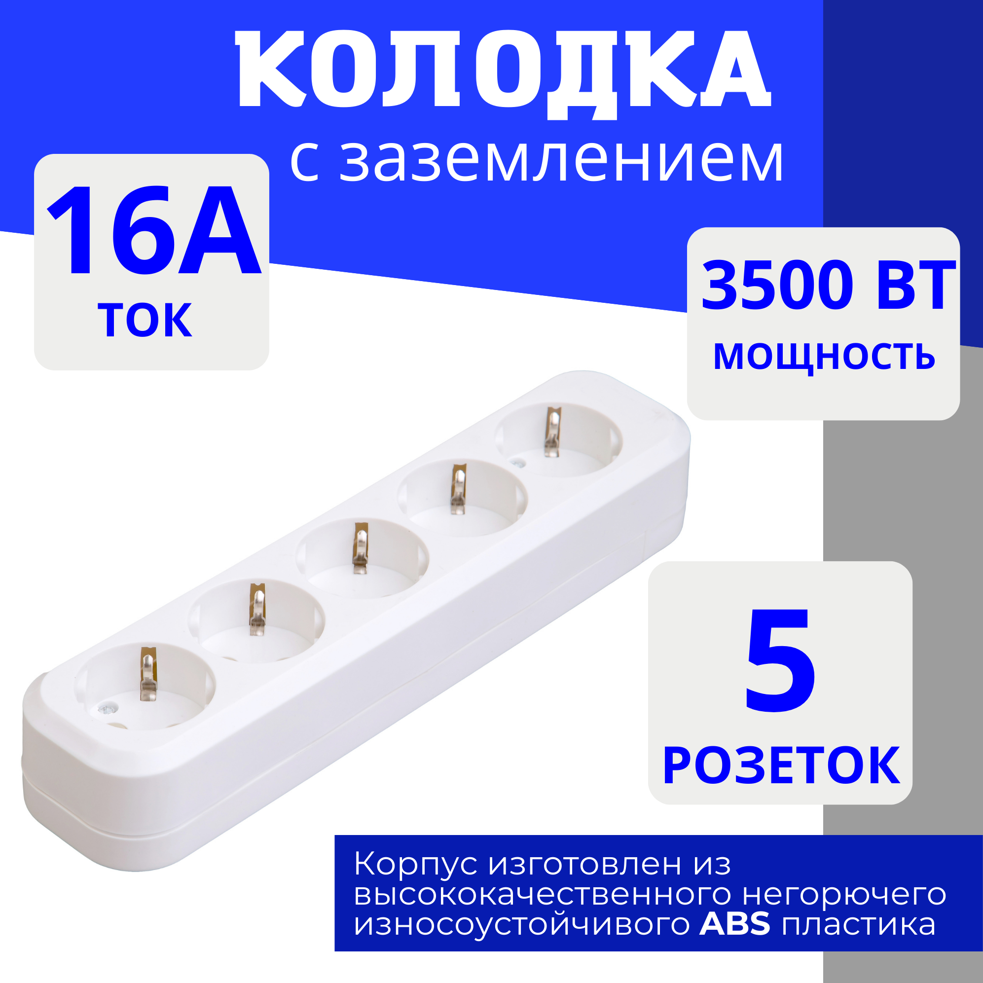 Купить Колодка для удлинителя на 5 розетки, с заземлением 220В 16А Elestarpro