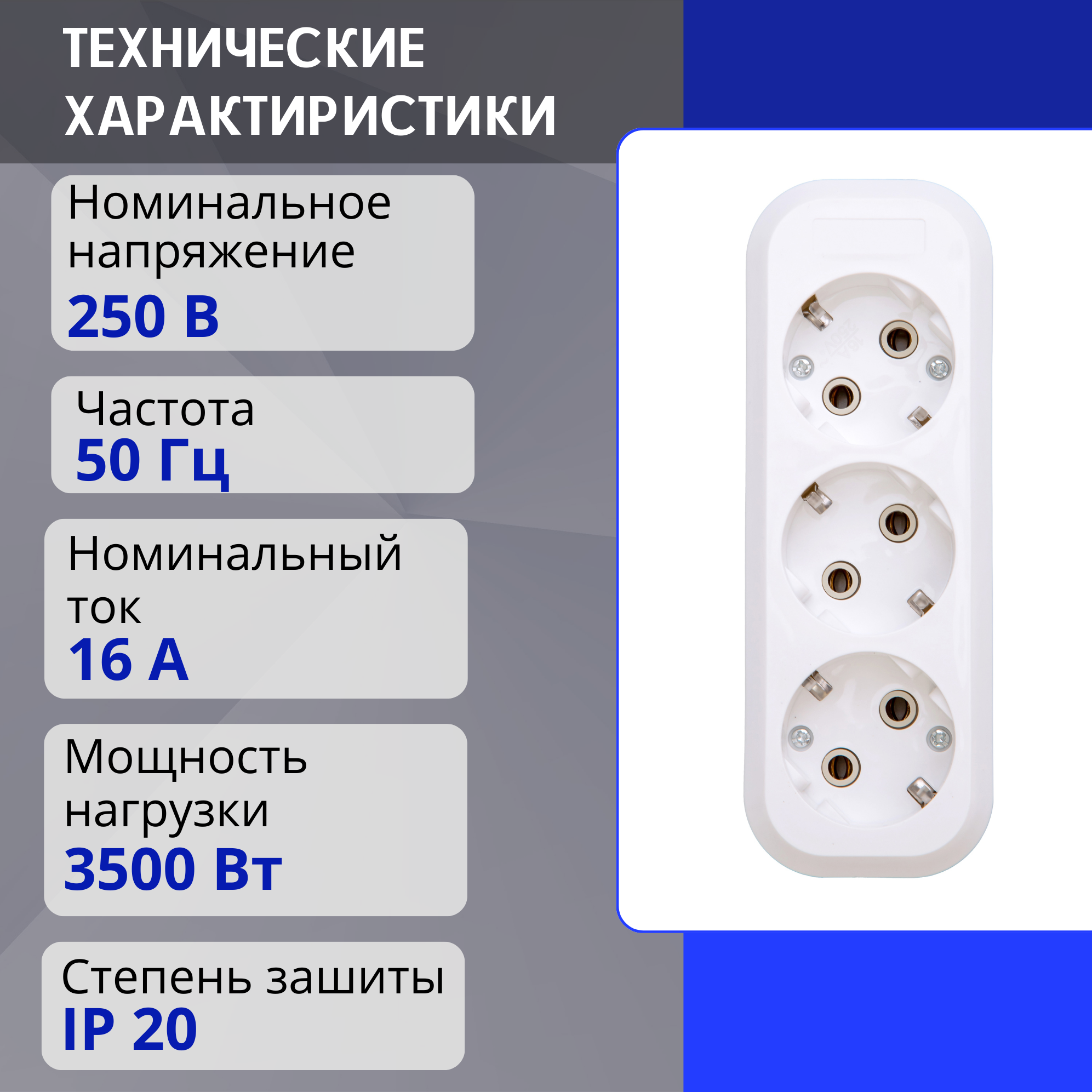 Колодка для удлинителя на 3 розетки, с заземлением 220В 16А Elestarpro интересное:
