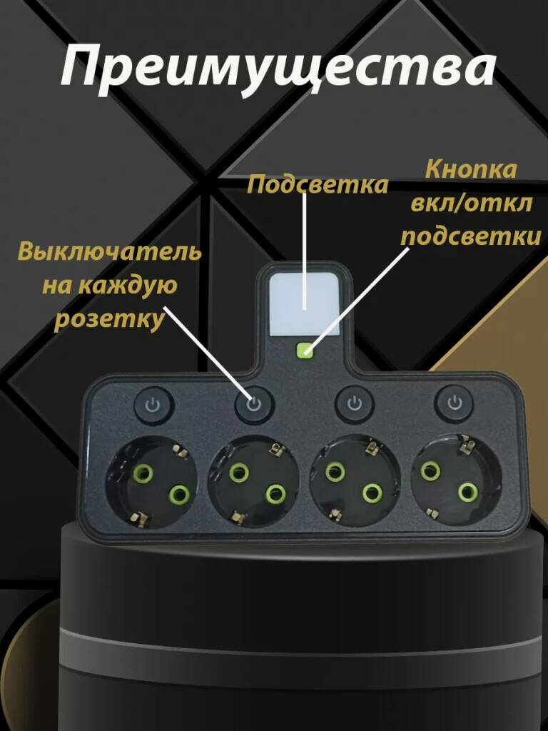 Сетевой фильтр разветвитель/Тройник для розетки с подсветкой от GadFamily_Shop интересное:
