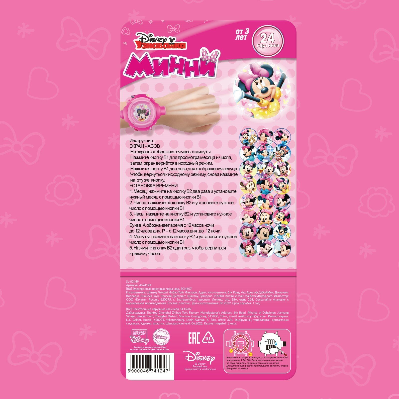 Часы детские Disney Минни Маус, наручные, часы проектор, для девочек, от 3 лет, 24 картинки, розовые