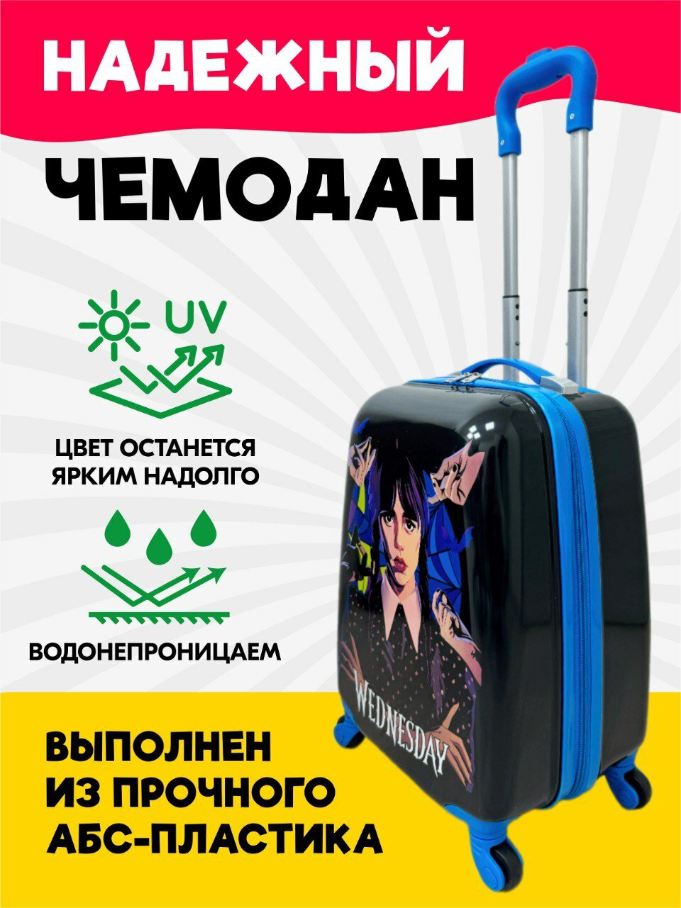 СохранитьЧемодан на колесах детский Уэнсдей Аддамс. Ручная кладь, 45 см, 28 л. Дорожный чемодан на колесиках для путешествий и поездок. интересное: