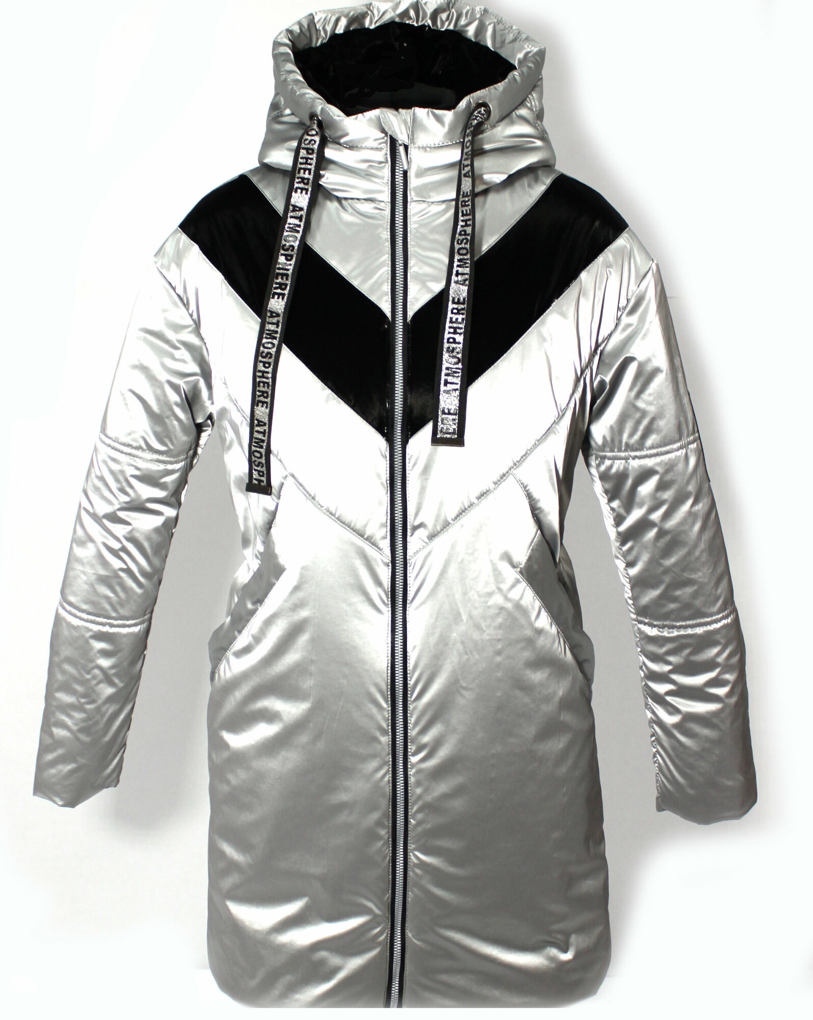 Куртка для девочки Эврика детская одежда М-789 размер: 164-84-69 цвет: серебро/черный