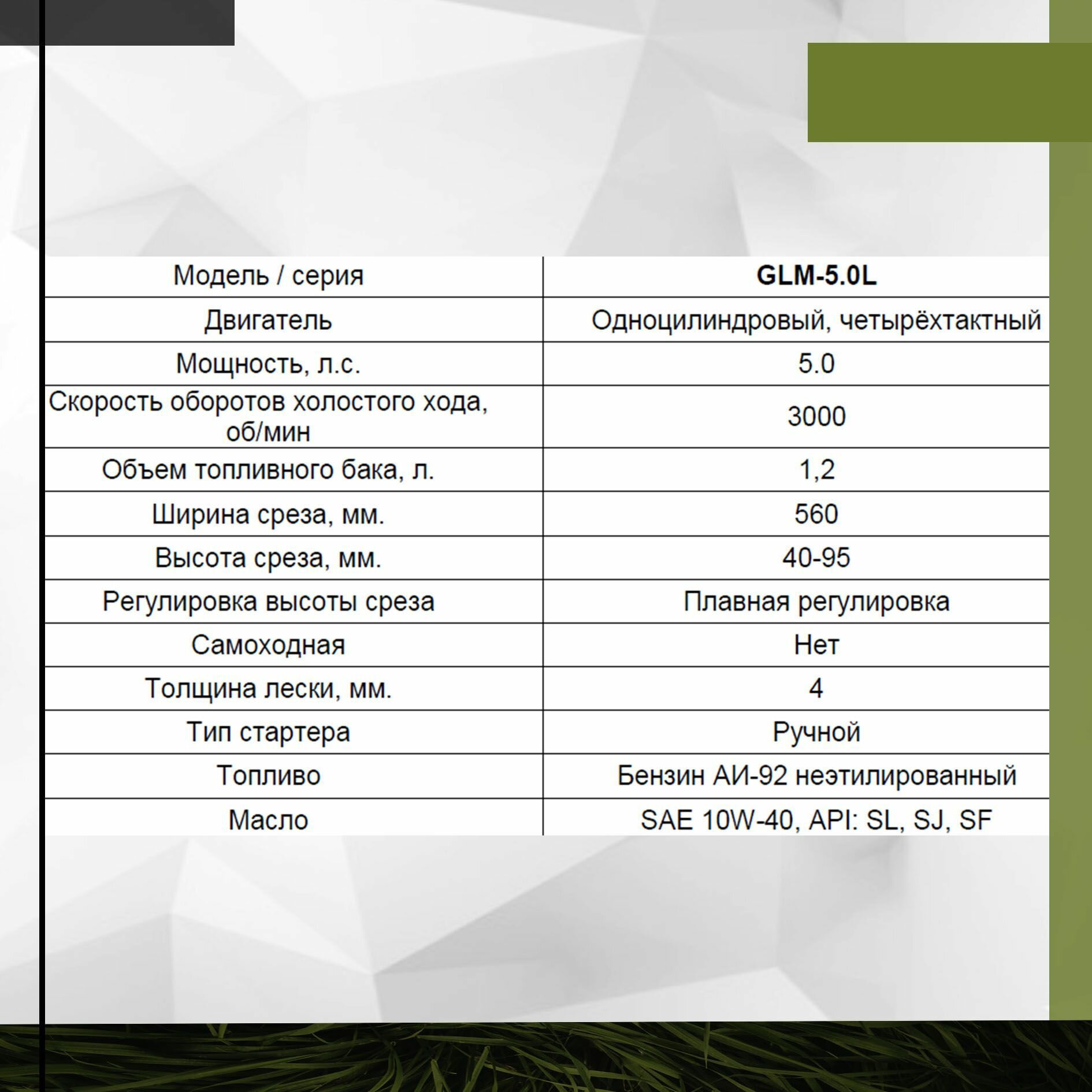 Газонокосилка лесочная GLM-5.0 L (5 л.с., 3000 об/мин, от 40 мм до 95 мм, ширина - 560 мм) интересное:
