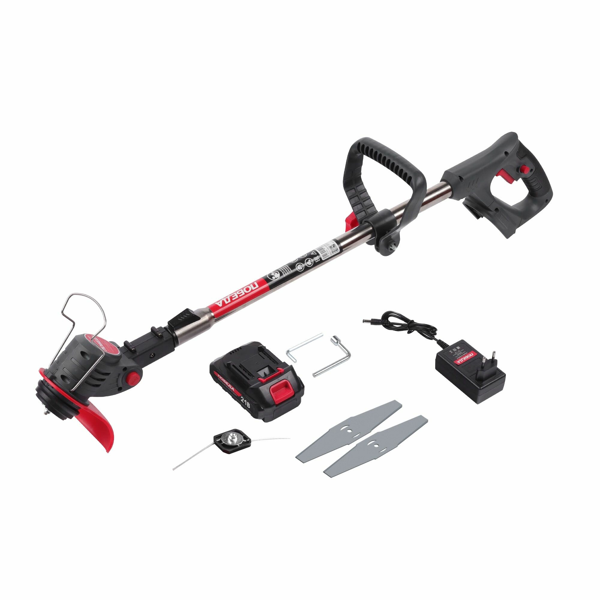 | Подробная комплектация | триммер, рукоятка, защитный кожух, набор для сборки, фиксатор рукоятки, насадка триммерная (пластик) 1шт., нож триммерный (сталь) 2шт., АКБ, ЗУ, инструкция |
