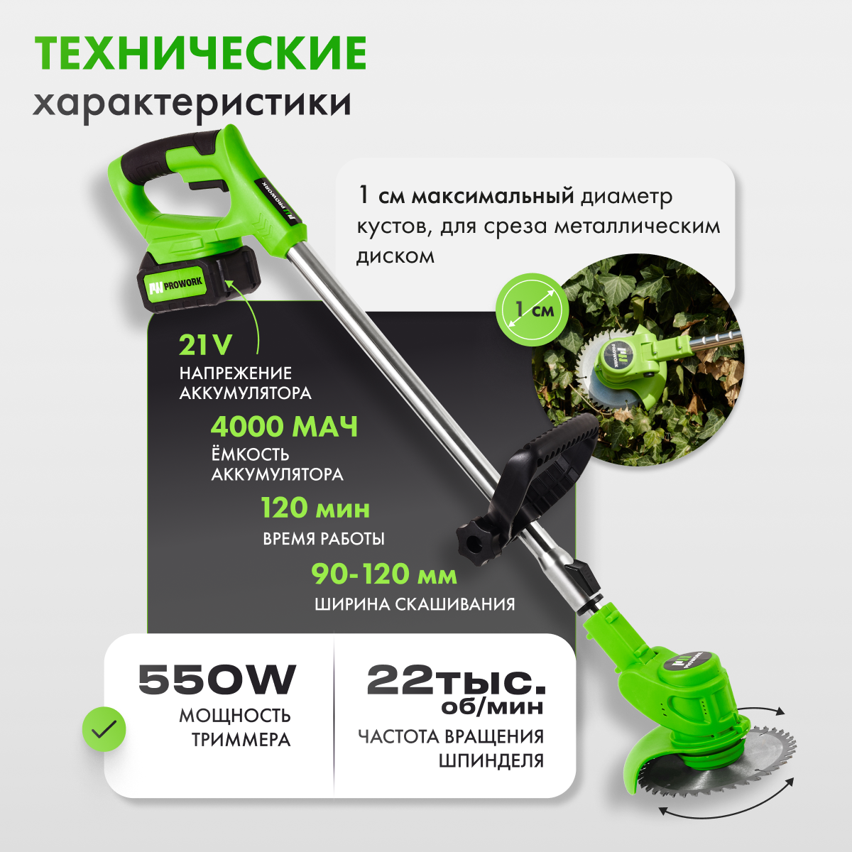 Триммер аккумуляторный садовый Газонокосилка аккумуляторная с 2 аккумуляторами Prowork интересное: