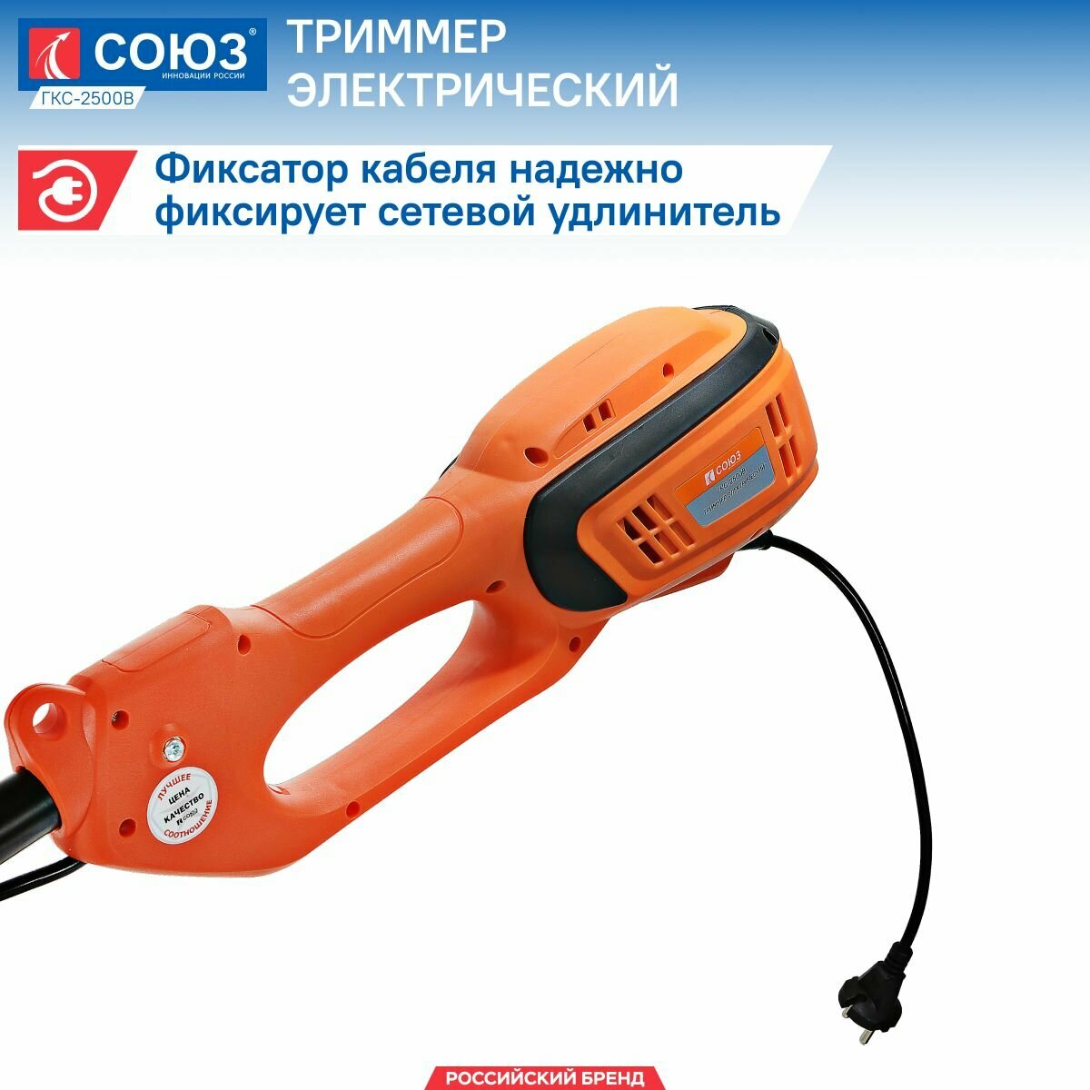Триммер электрический Союз ГКС-2500В (2500 Вт, ручка велосипедного типа, ширина скоса 400 мм) интересное: