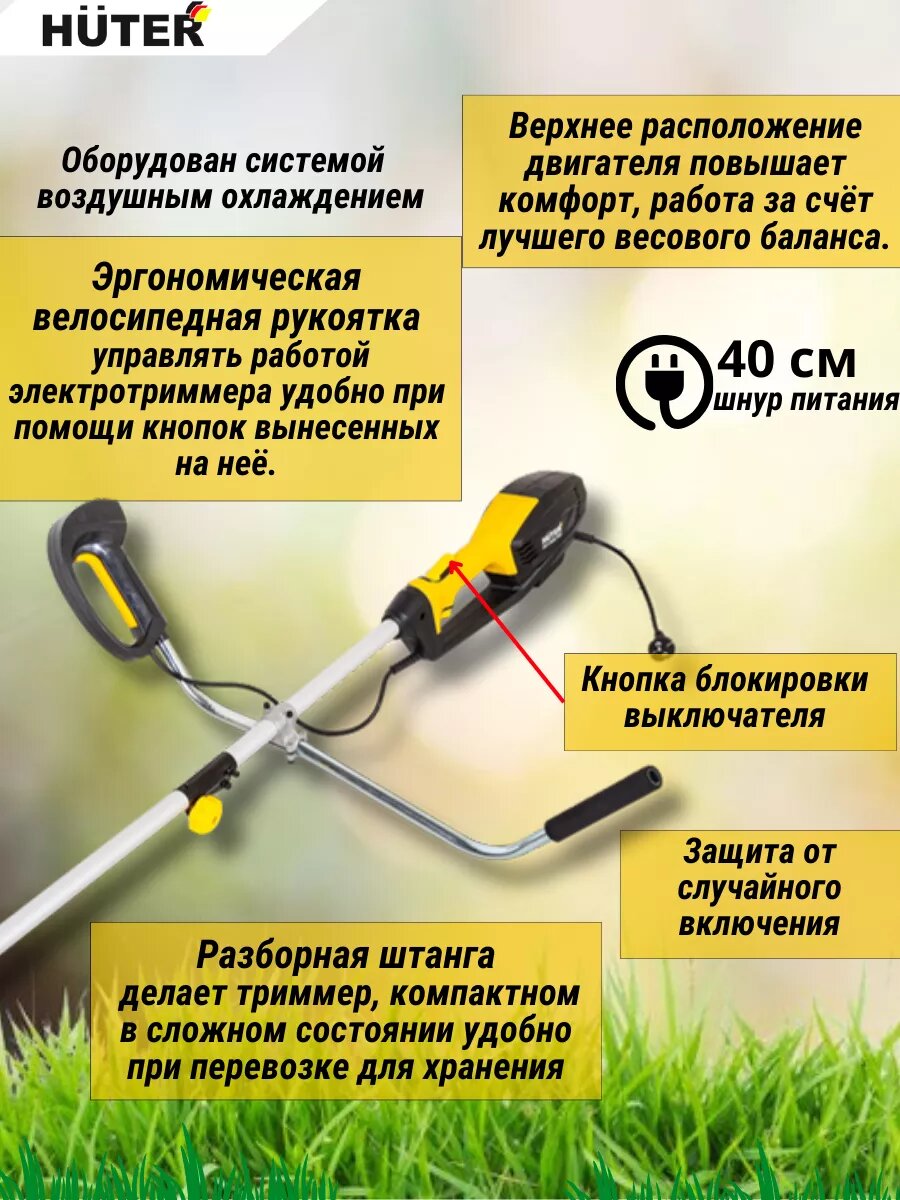 Триммер электрический Huter GET-LS45, 1500 Вт, 8000 об/мин, разборный вал