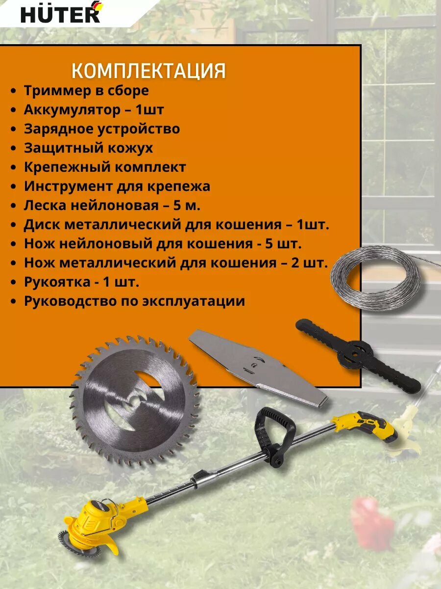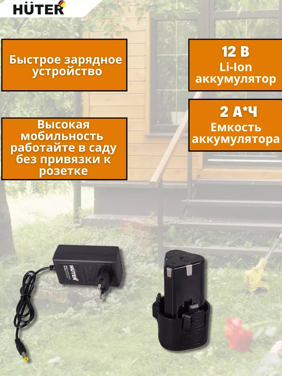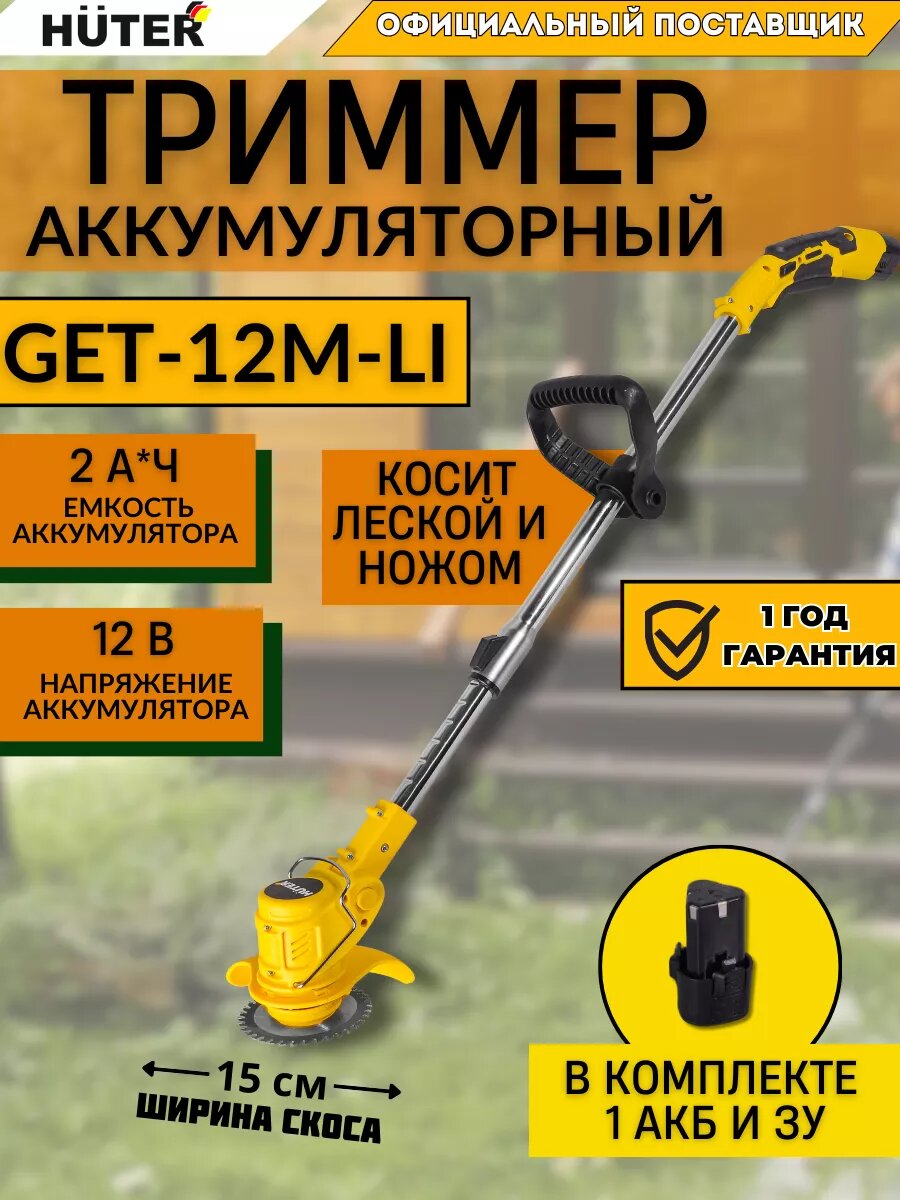 Аккумуляторный триммер / электротриммер GET-12M-Li Huter (в комплекте 1 АКБ и ЗУ) (12 В, 2 Ач, Li-ion, скашивание леской - 15 cм, Ø – 2 мм) интересное: