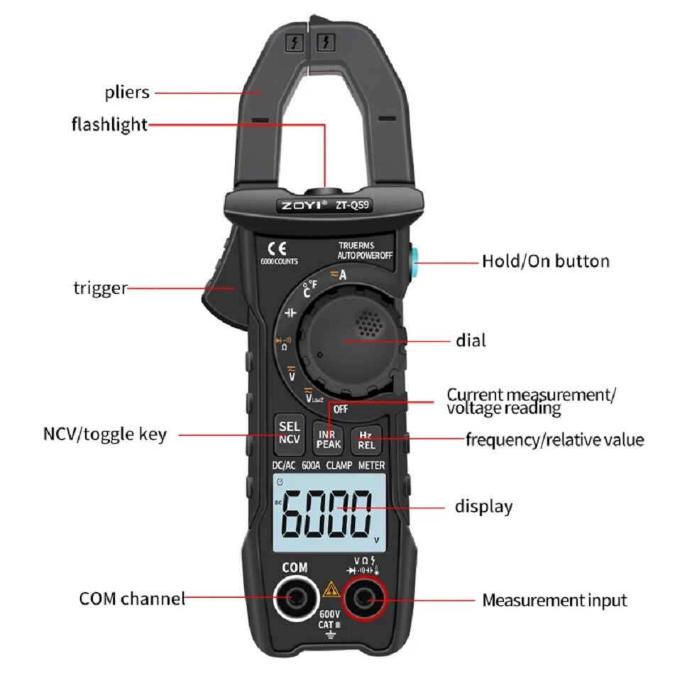 Купить Токовые профессиональные цифровые клещи True RMS ZOYI ZT-QS9 с NCV. До 600 А. 17 функций.