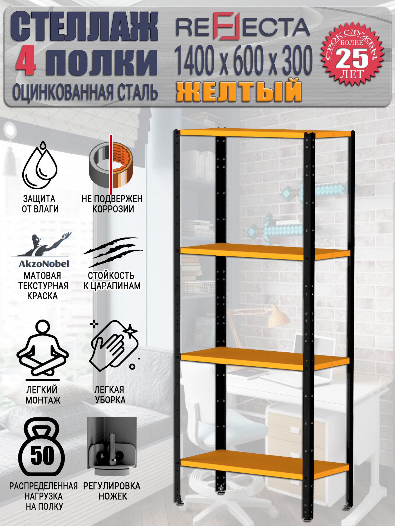 СохранитьСтеллаж металлический 140x60x30. Четыре полки. Оцинкованный. RAL 1033 интересное: