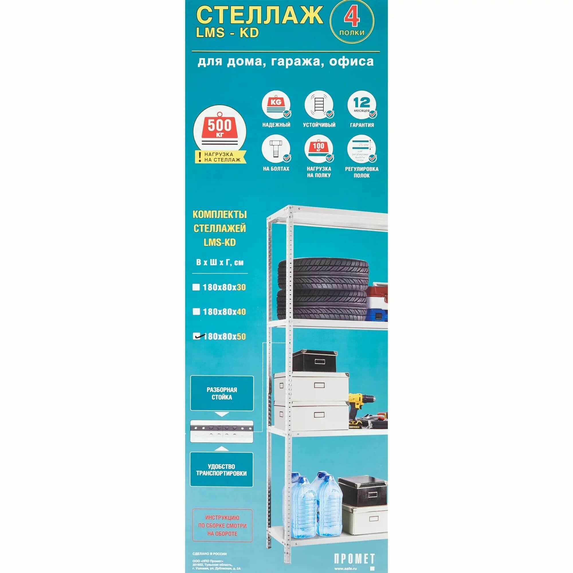 Стеллаж металлический 4 полки 180x80x50 см 100 кг на полку цвет серый интересное: