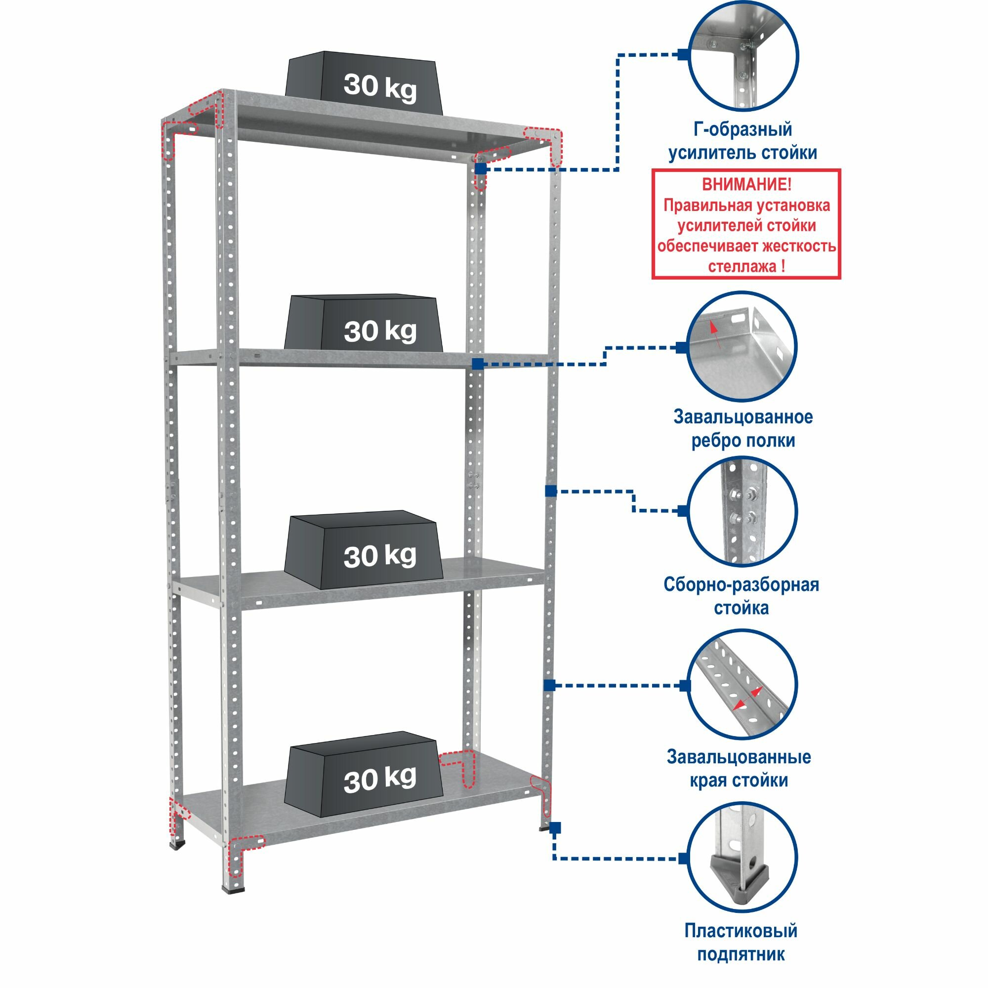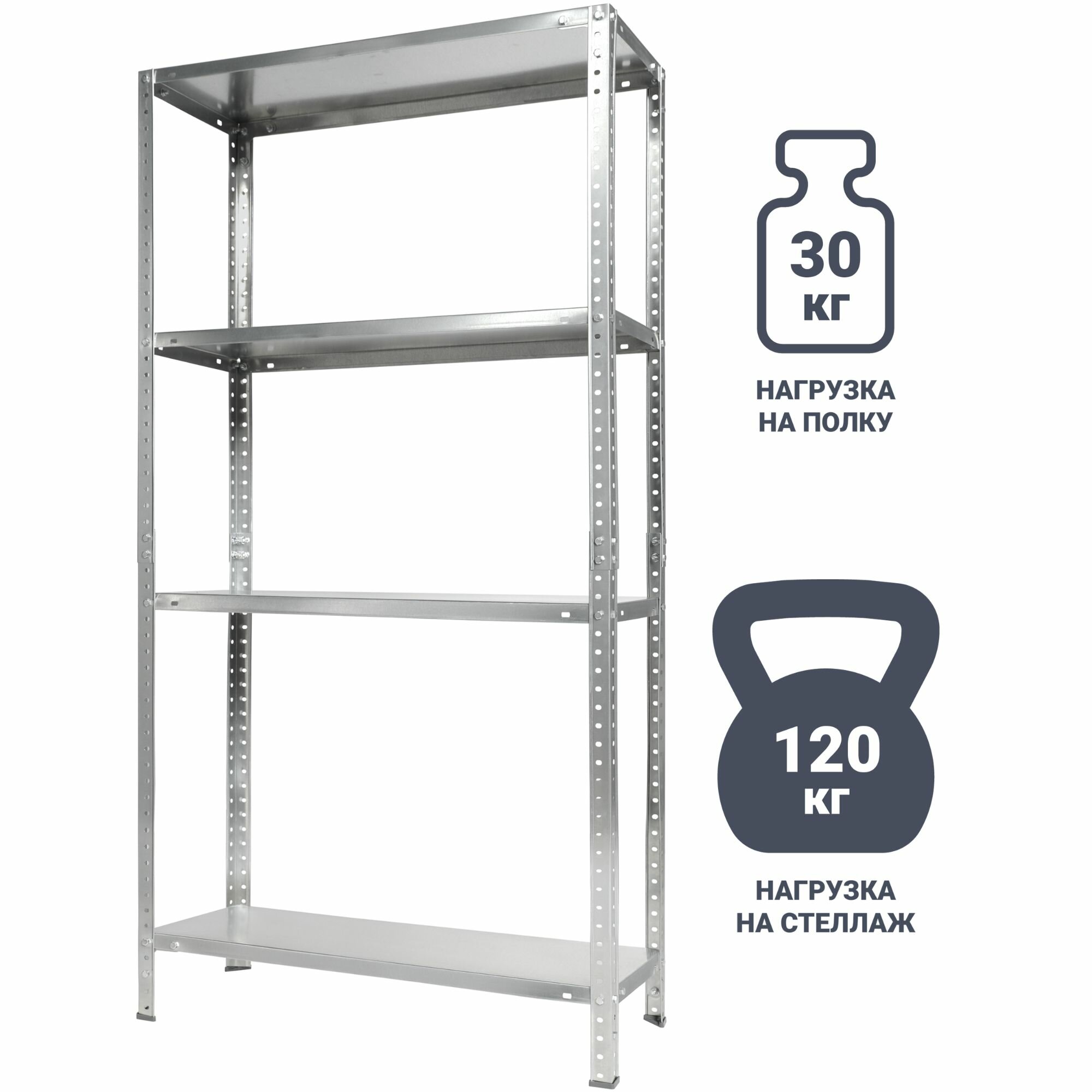 Стеллаж металлический 4 полки Практик LES 15KD 145x75x30 см цвет серый нагрузка на полку 30 кг интересное: