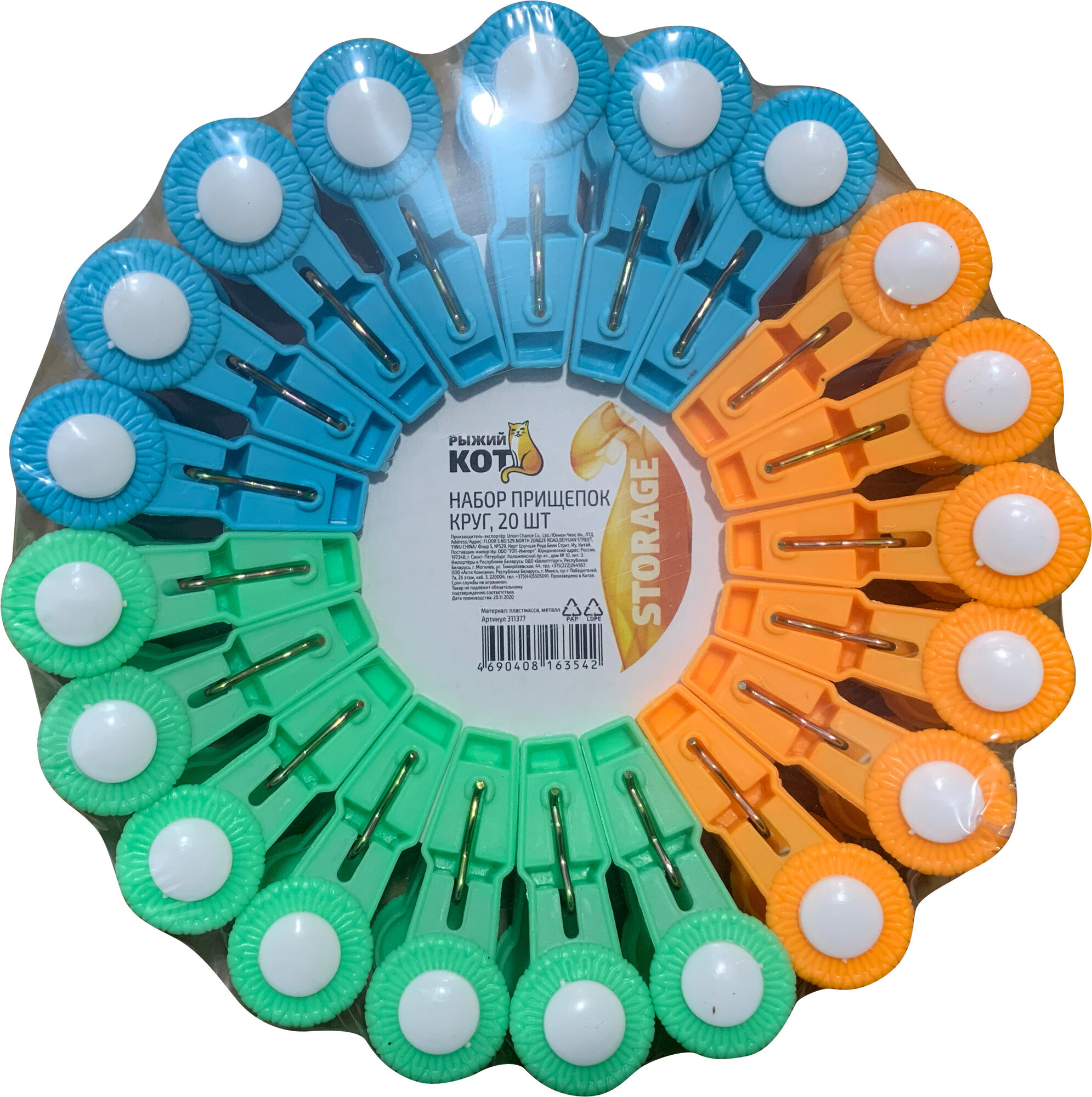 Набор прищепок круг, пластмасса, 20 шт интересное: