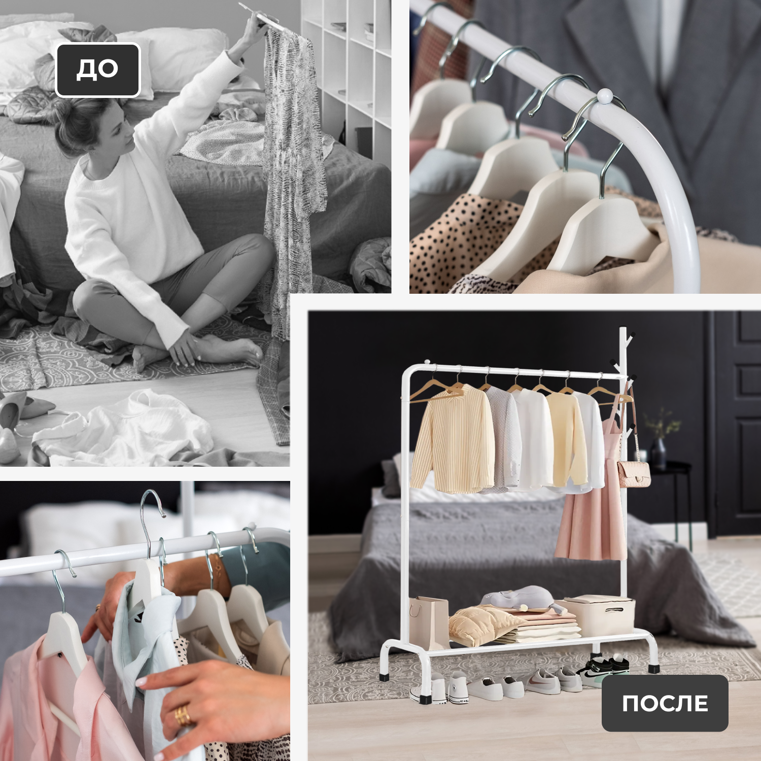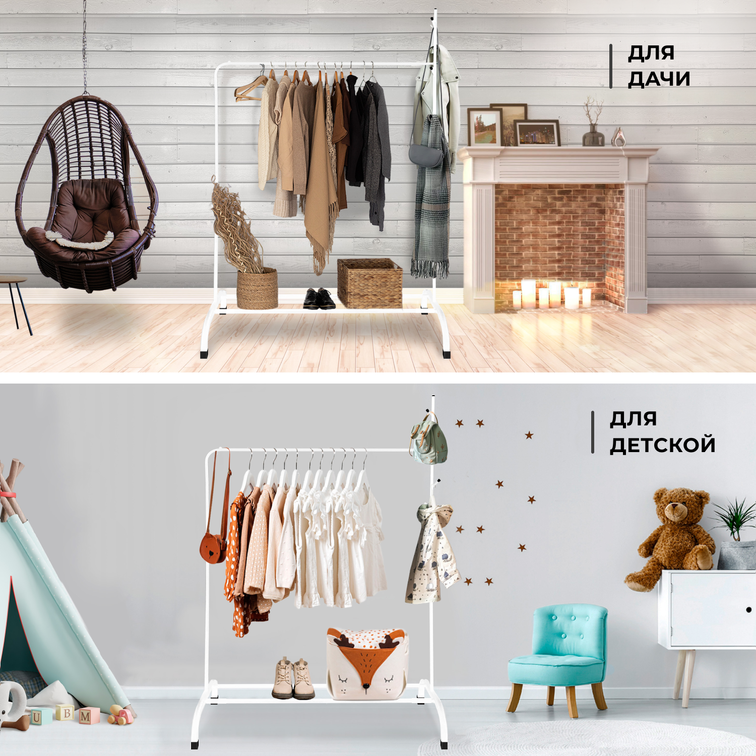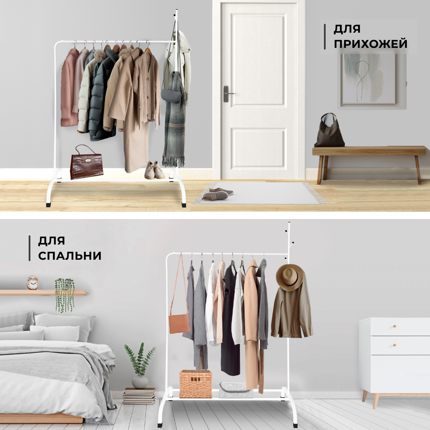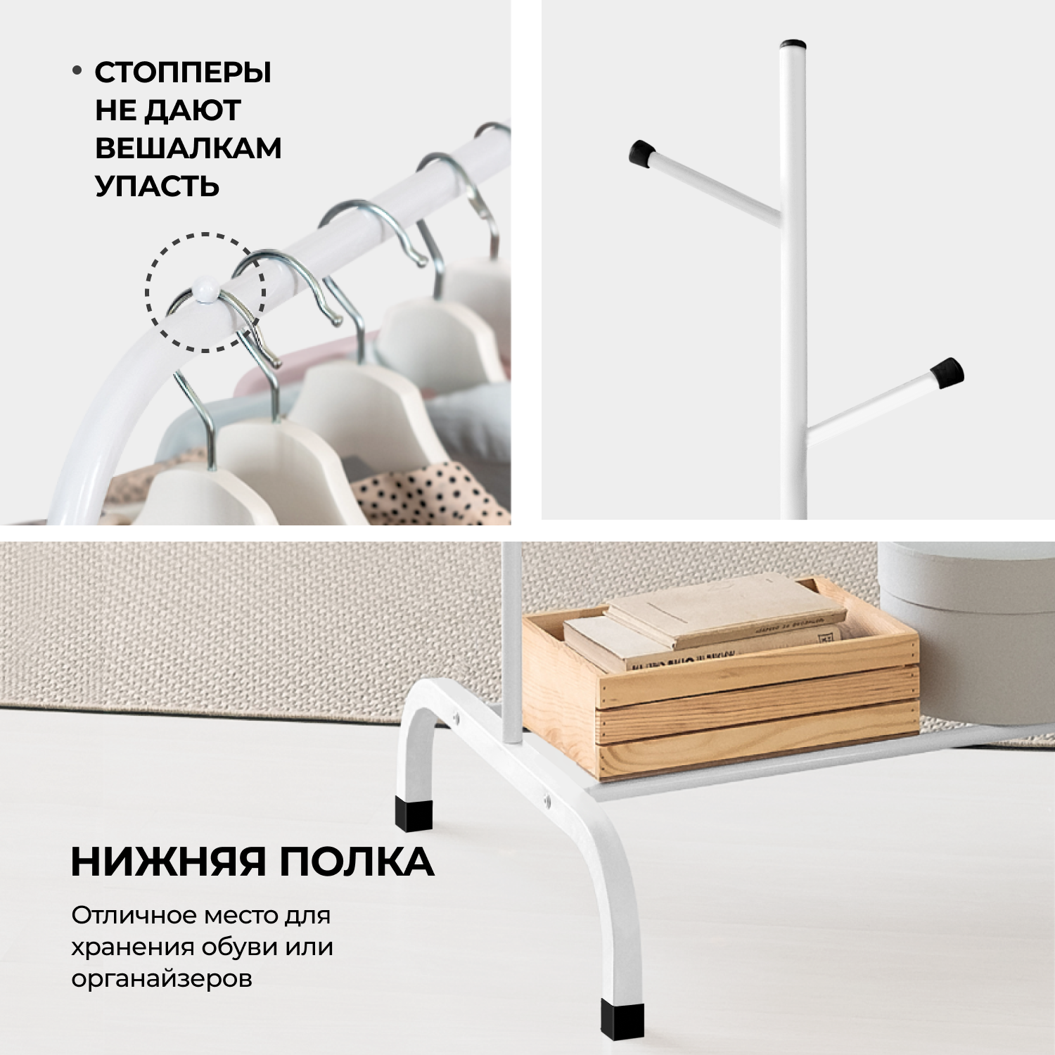 Вешалка напольная для одежды с полкой для обуви, белая, Bevelix интересное: