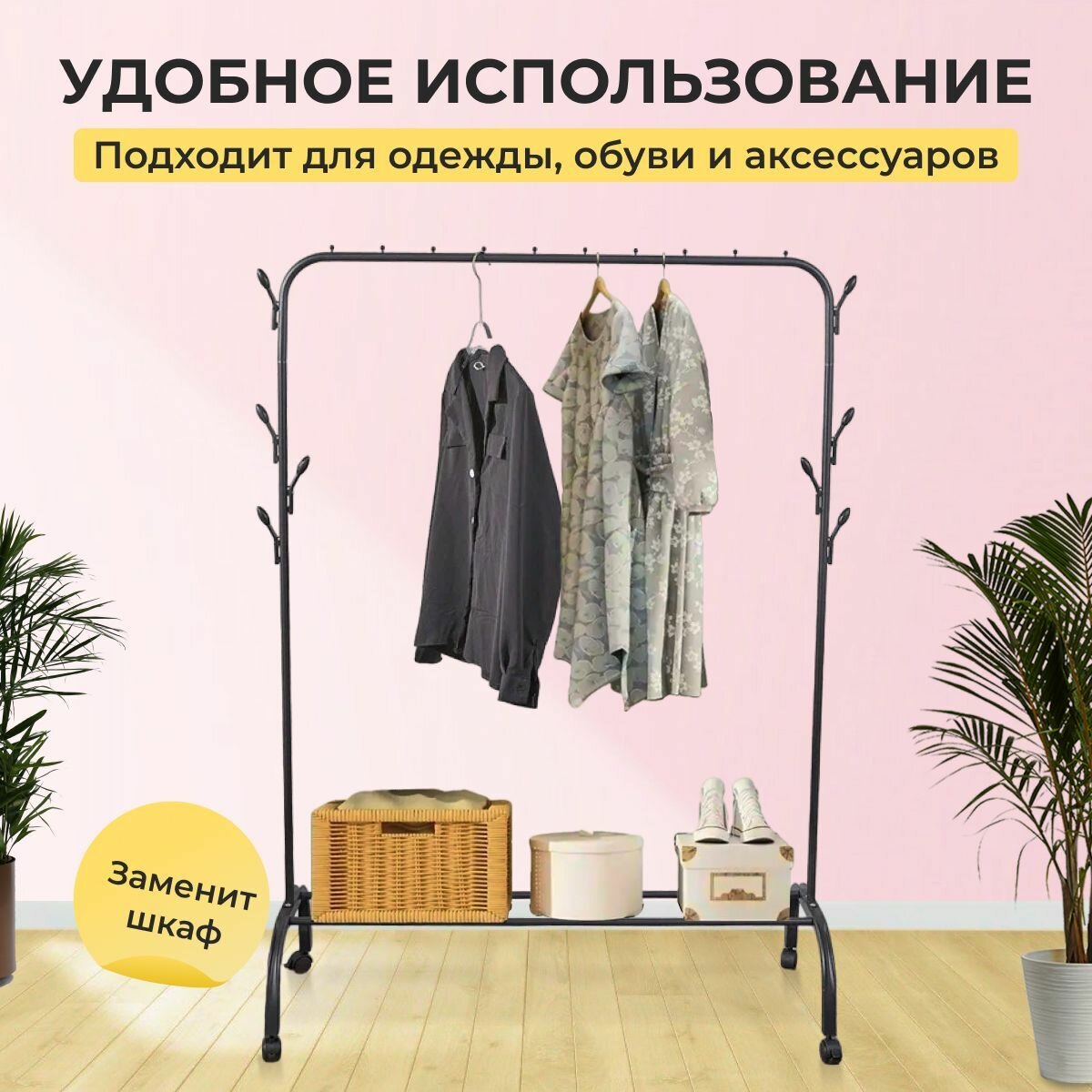 Вешалка напольная для одежды, Вешалка напольная рейл, 152x110x41 см, с обувницей интересное: