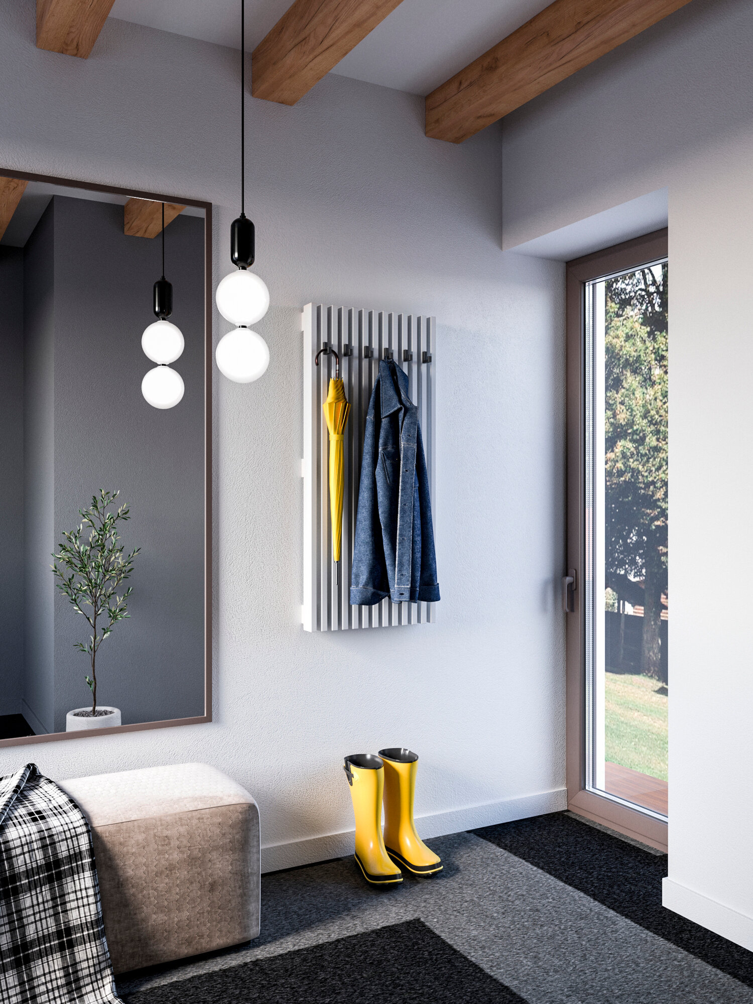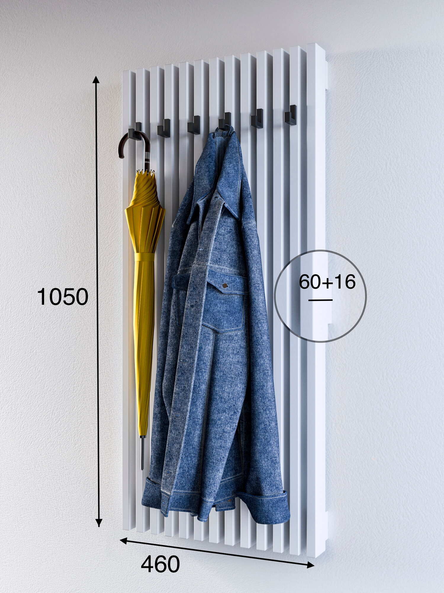 Вешалка настенная в прихожую Мебельно "Стиль" цвет белый - стильная белая настенная вешалка для одежды с рейками