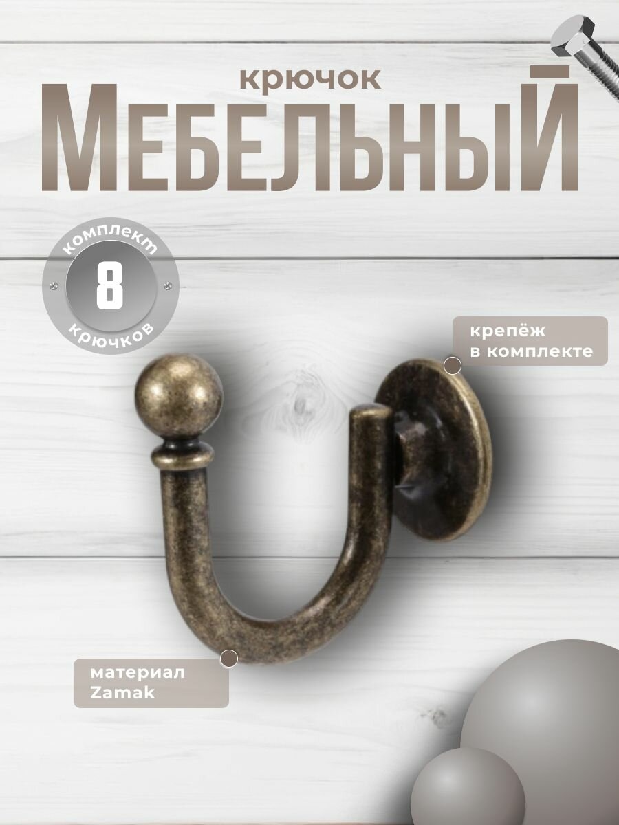 СохранитьКрючок ввертный BR 150 BA бронза (комплект 8 шт) интересное: