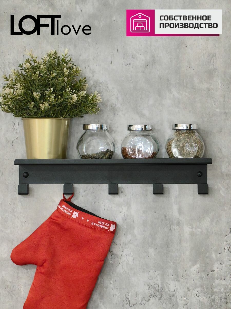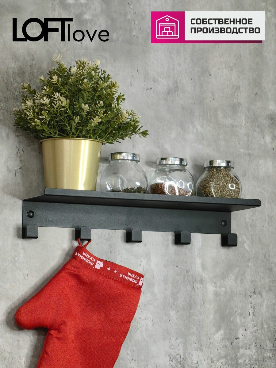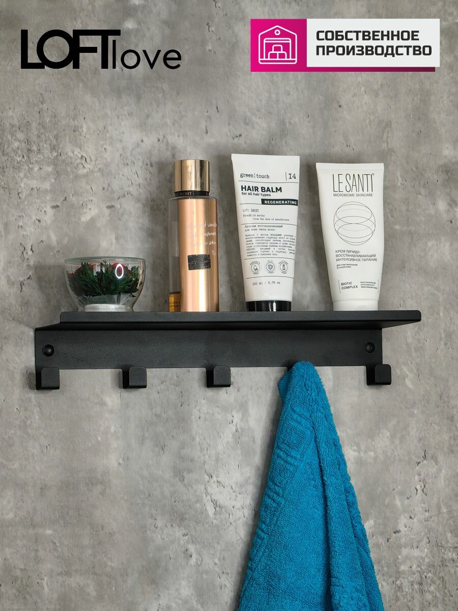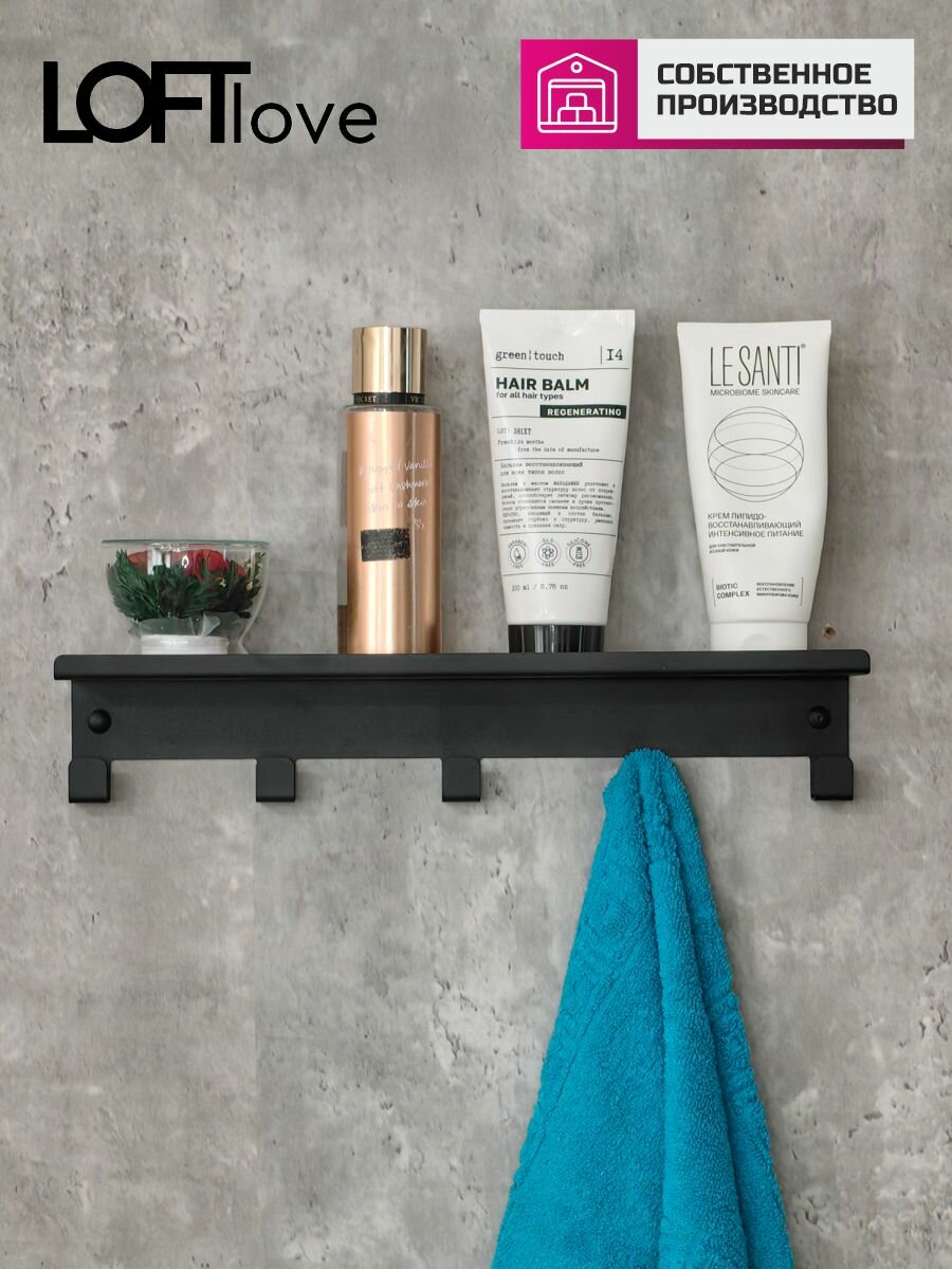 Полка с крючками, вешалка для ванной, кухни и прихожей 40 см металл чёрный интересное: