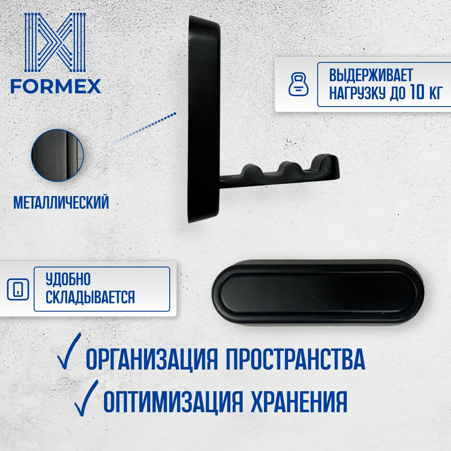 Крючок настенный лофт LOFT раскладной/складной FORMEX-220 черный металлический держатель, органайзер для дома, квартиры, лофта