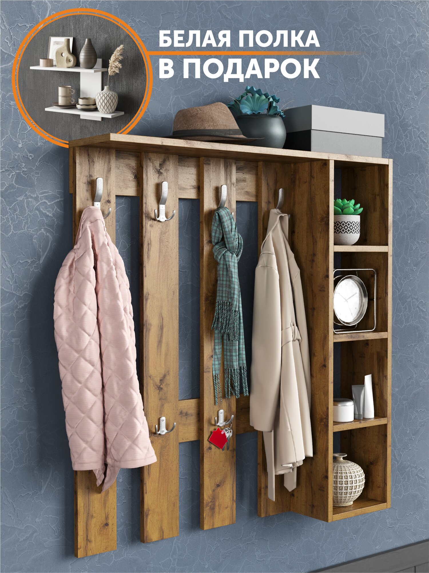 Вешалка настенная дуб вотан с полками для верхней одежды в прихожую интересное: