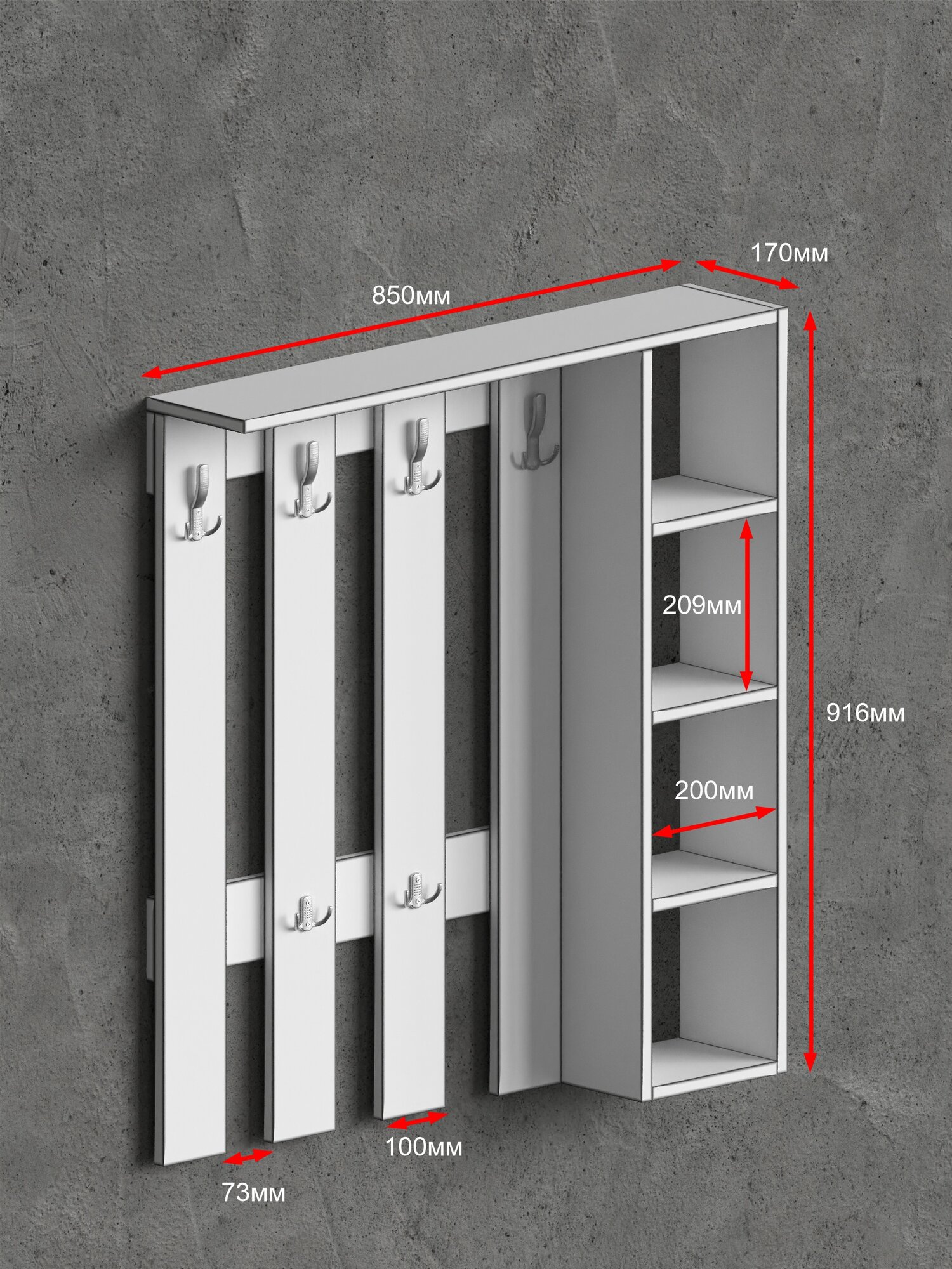 Вешалка настенная белая с полками для верхней одежды в прихожую