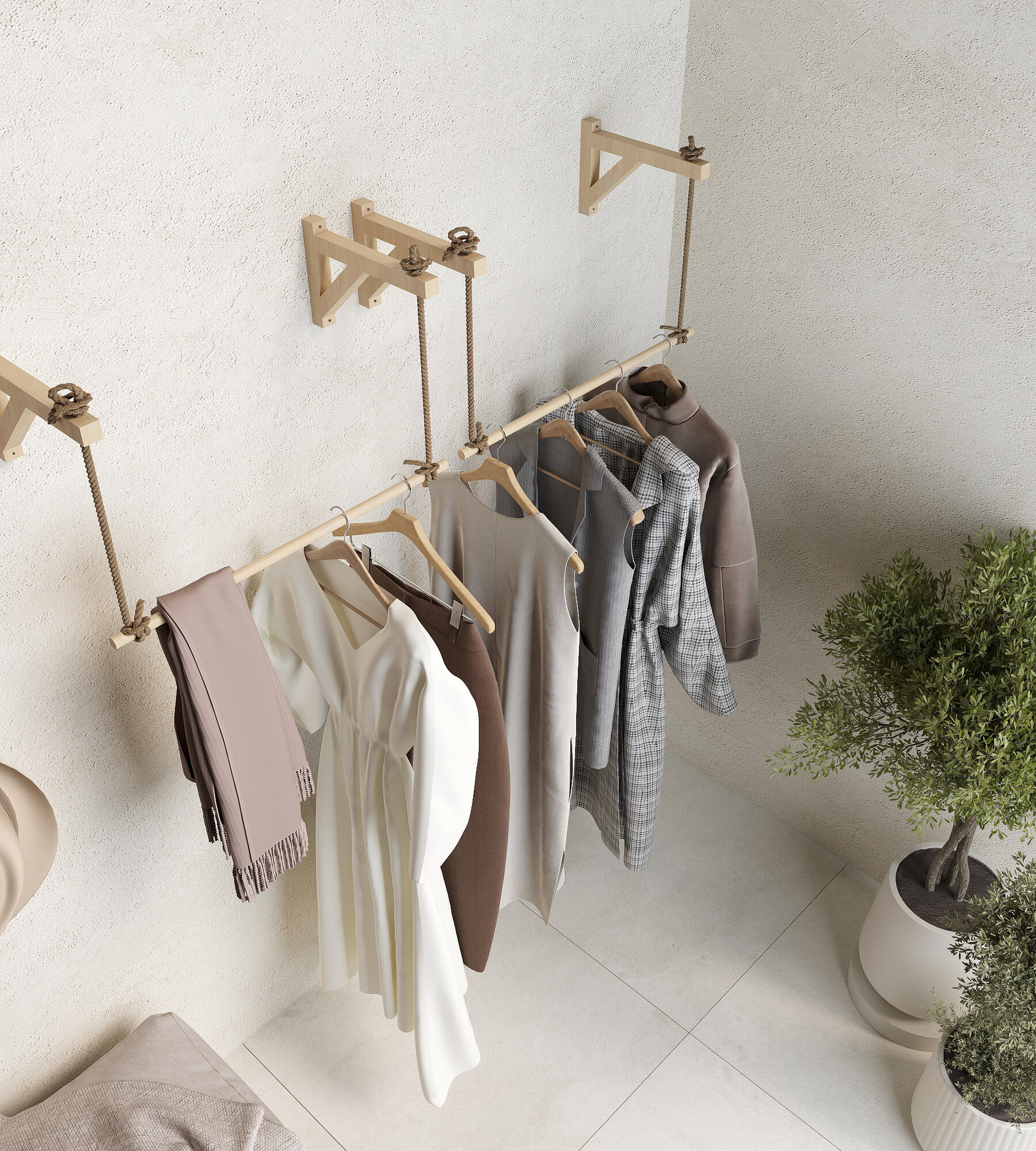 Вешалка для одежды с 1 штангой на веревке интересное: