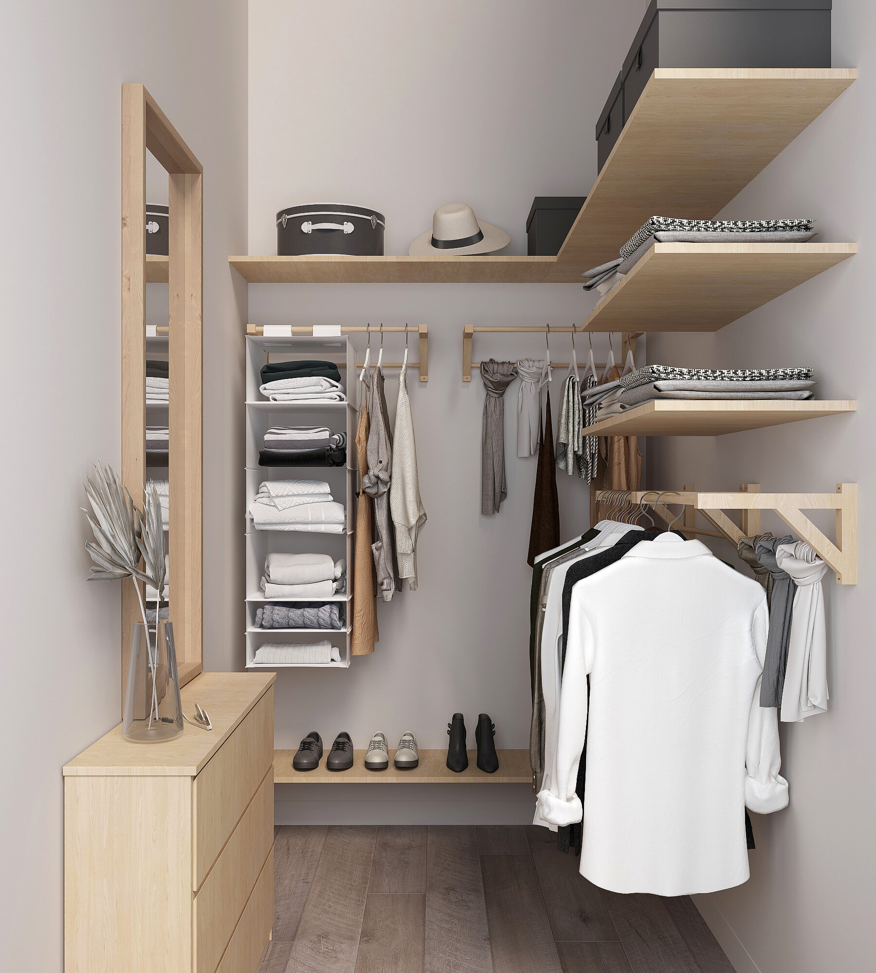 Полка-вешалка двойная c 4 штангами для одежды деревянная