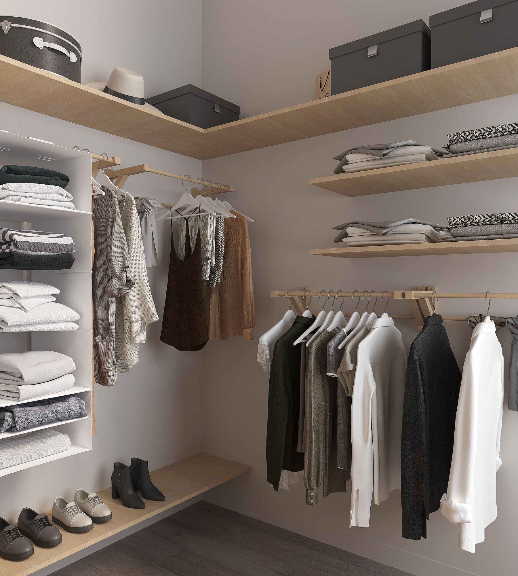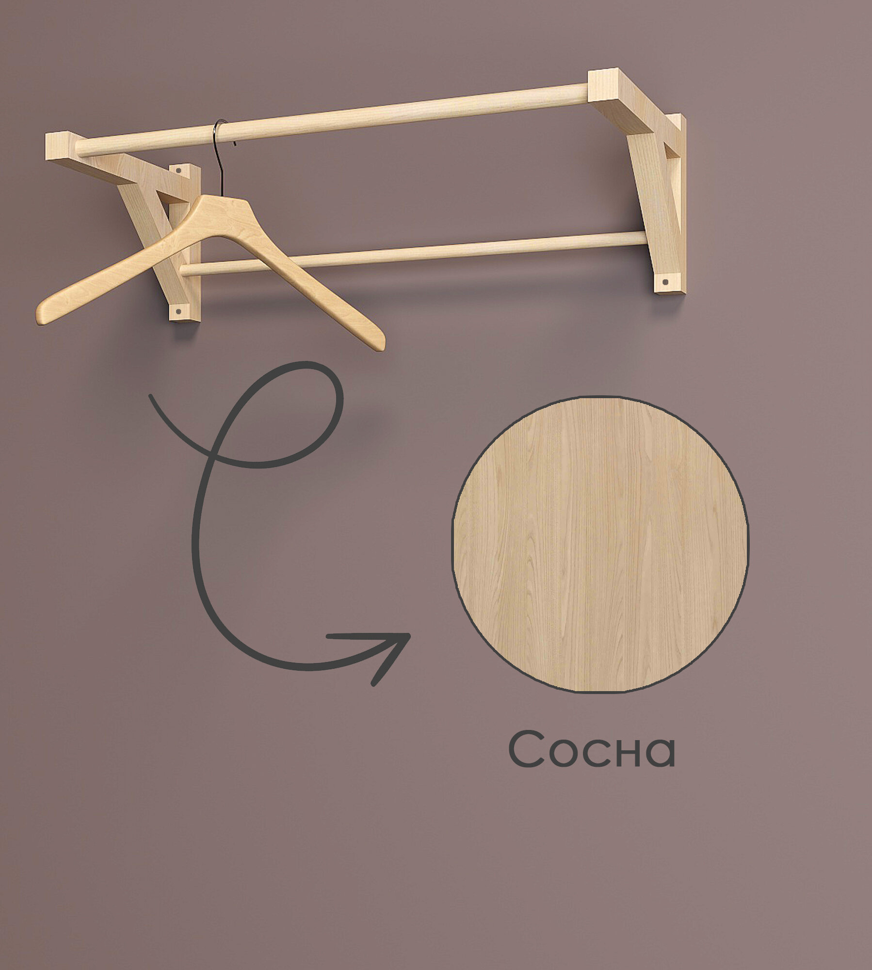 Полка-вешалка двойная c 2 штангами для одежды деревянная