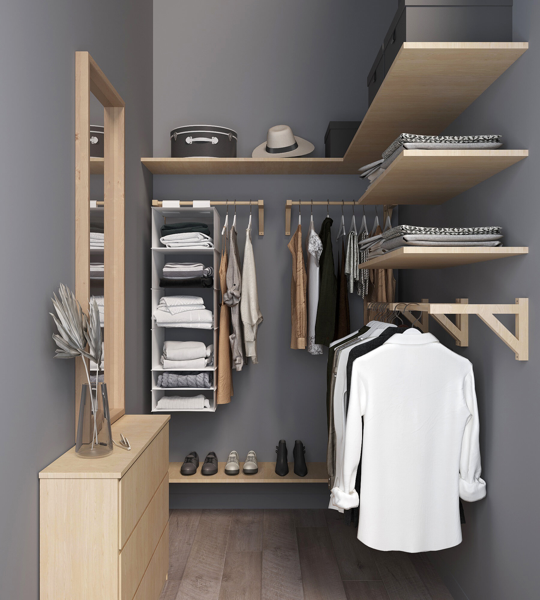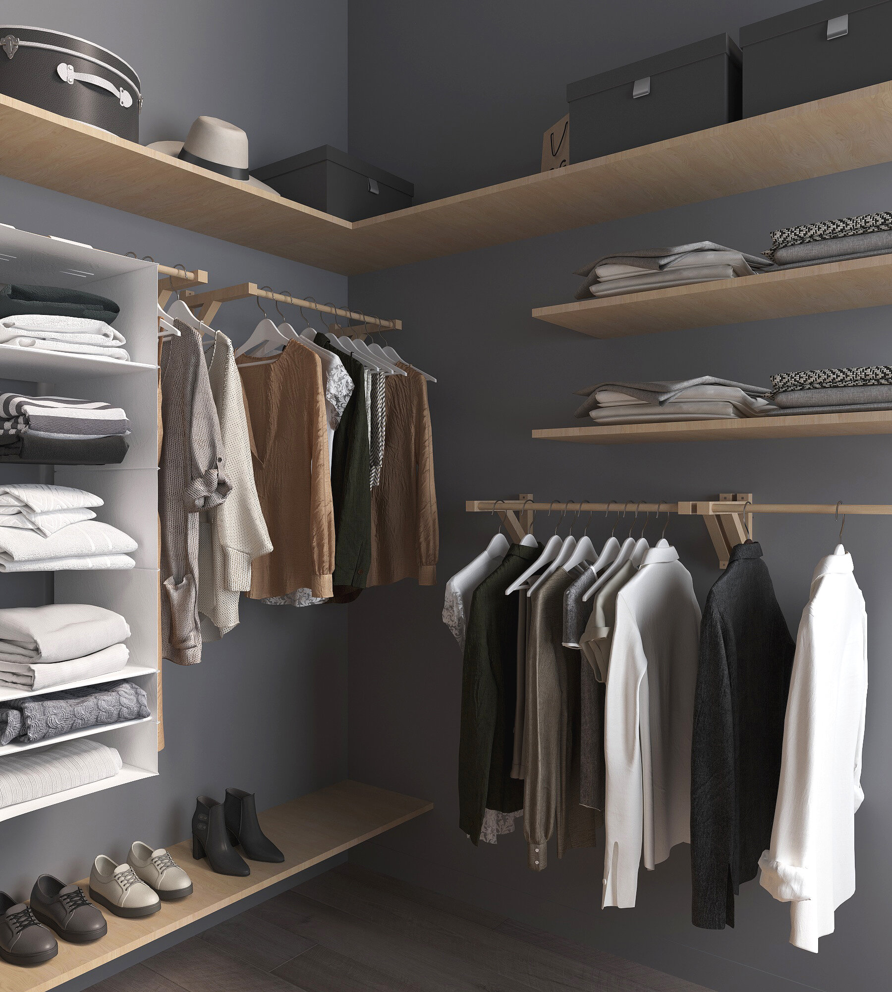 Полка-вешалка двойная c 2 штангами для одежды деревянная