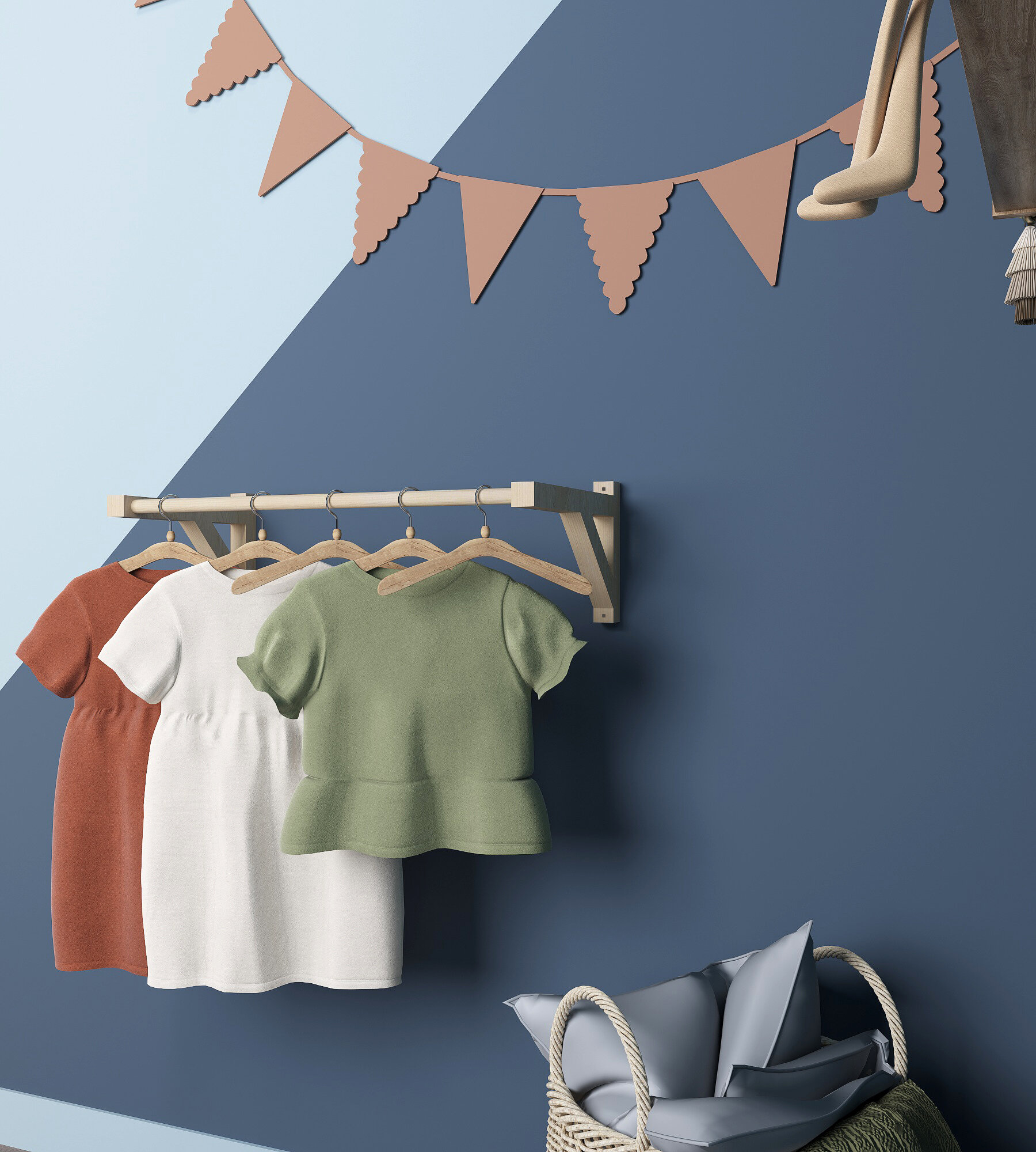 Вешалка для одежды с 1 штангой на веревке