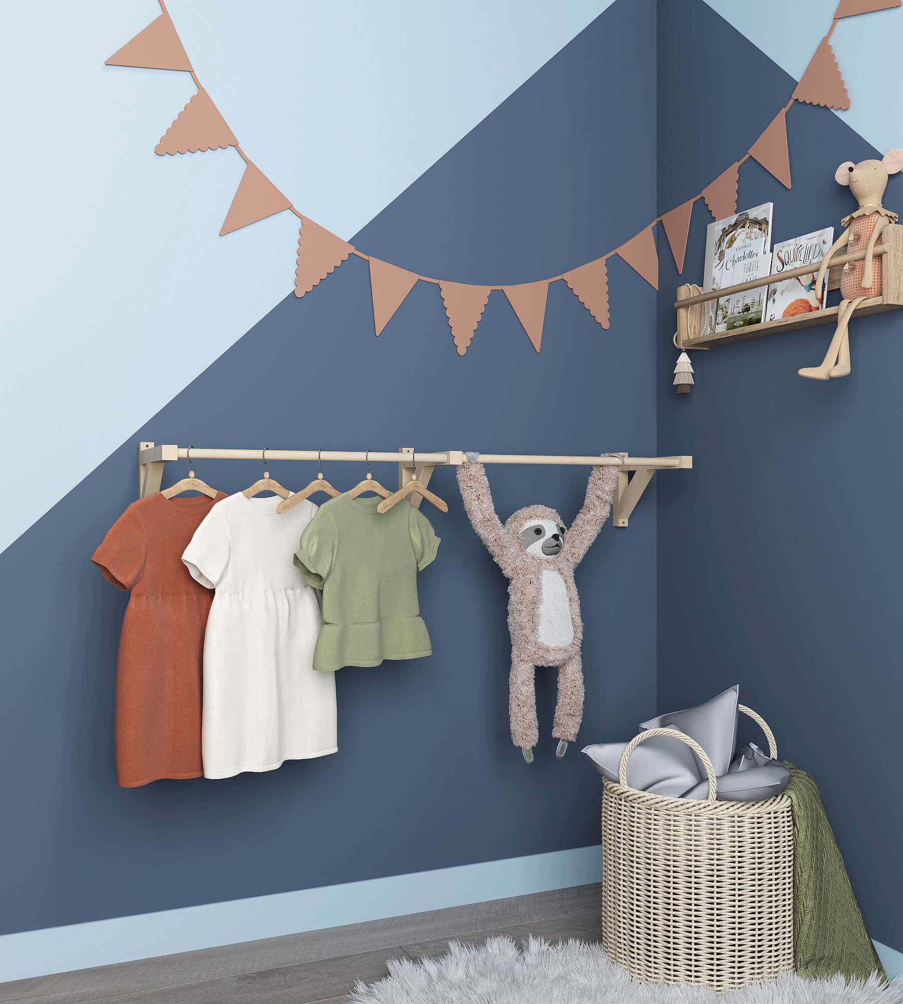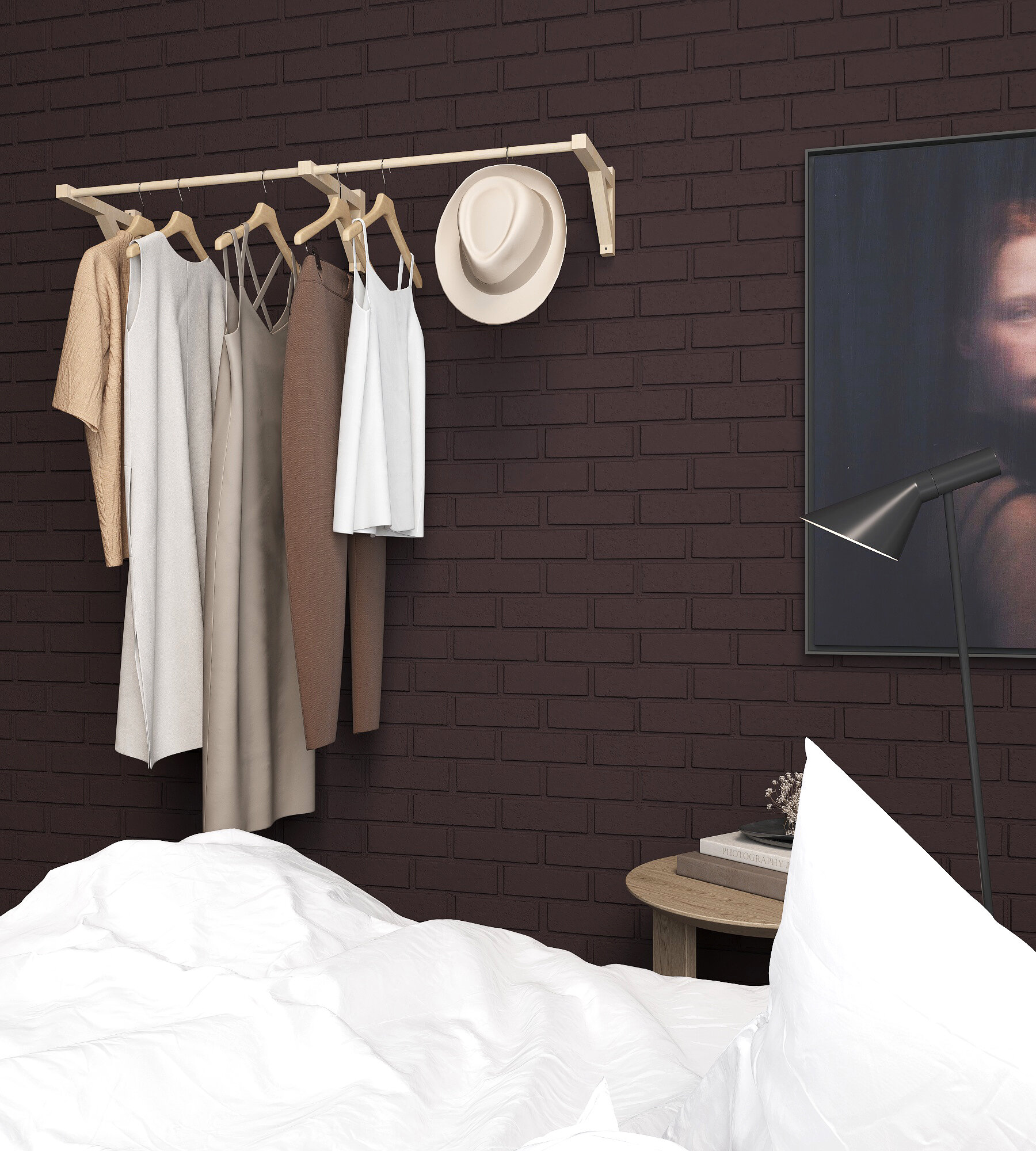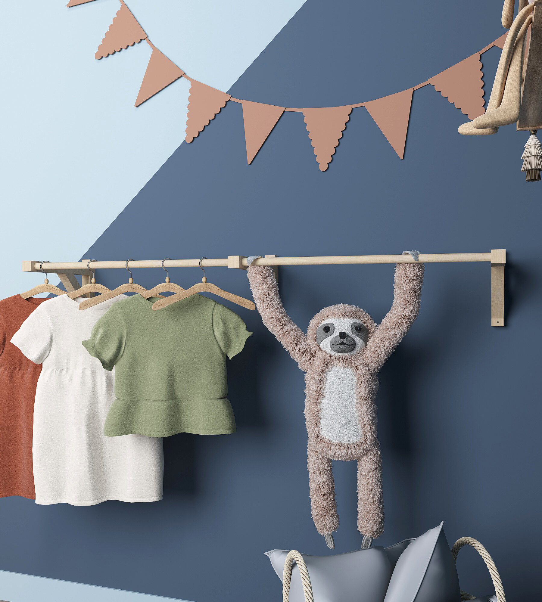 Вешалка для одежды с 1 штангой на веревке