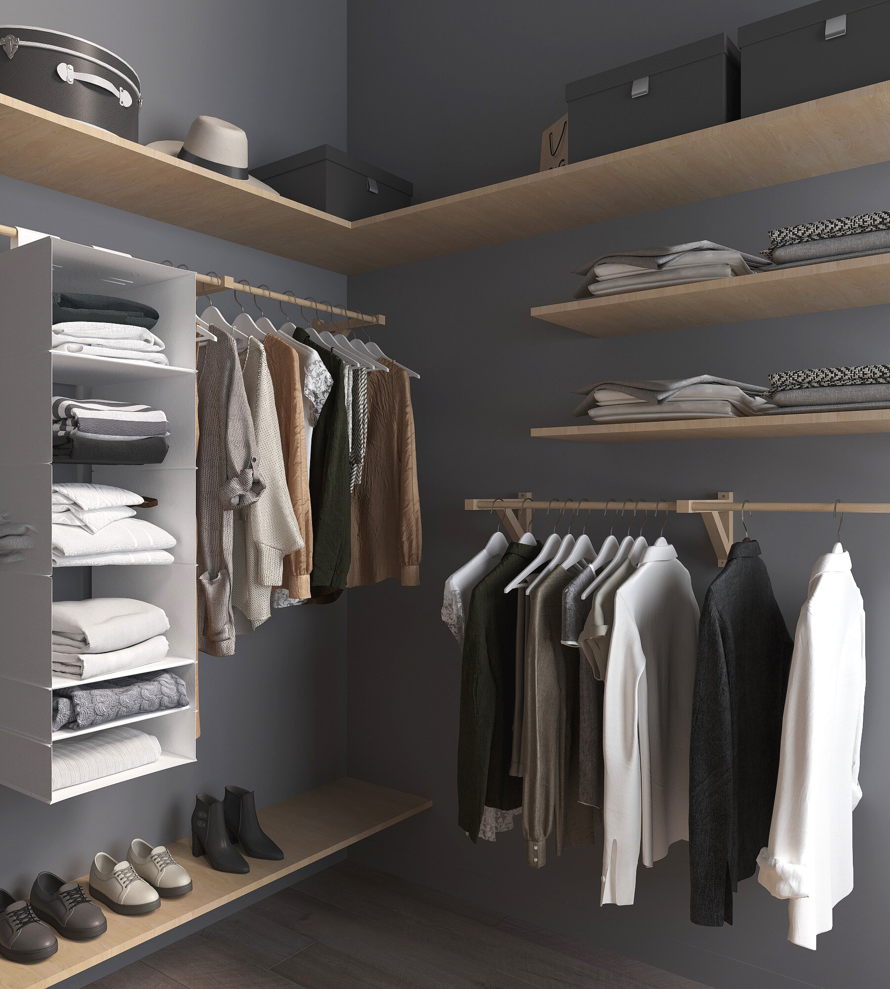 Полка-вешалка двойная c 4 штангами для одежды деревянная