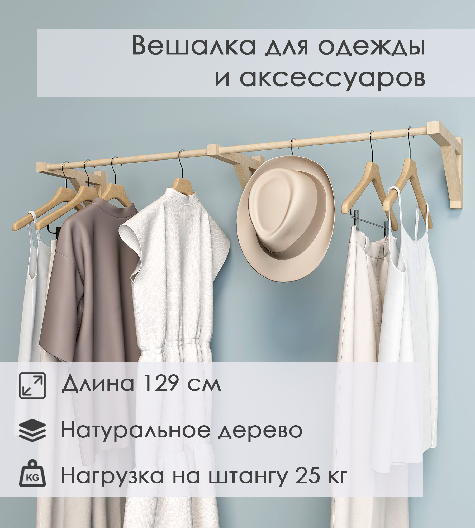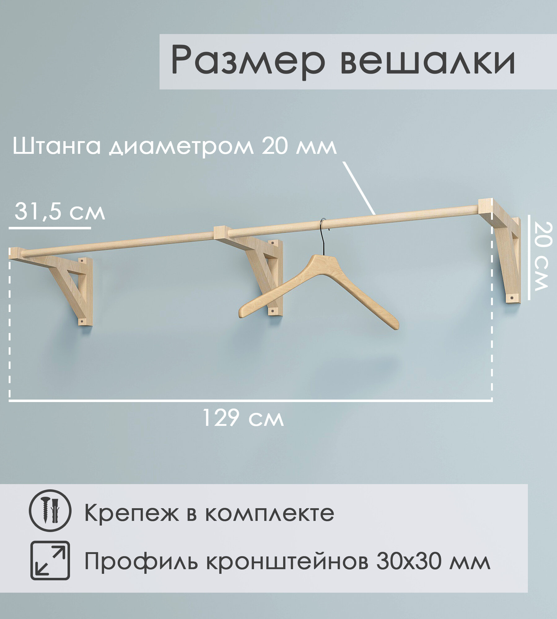 Полка-вешалка для одежды с 2 штангами деревянная