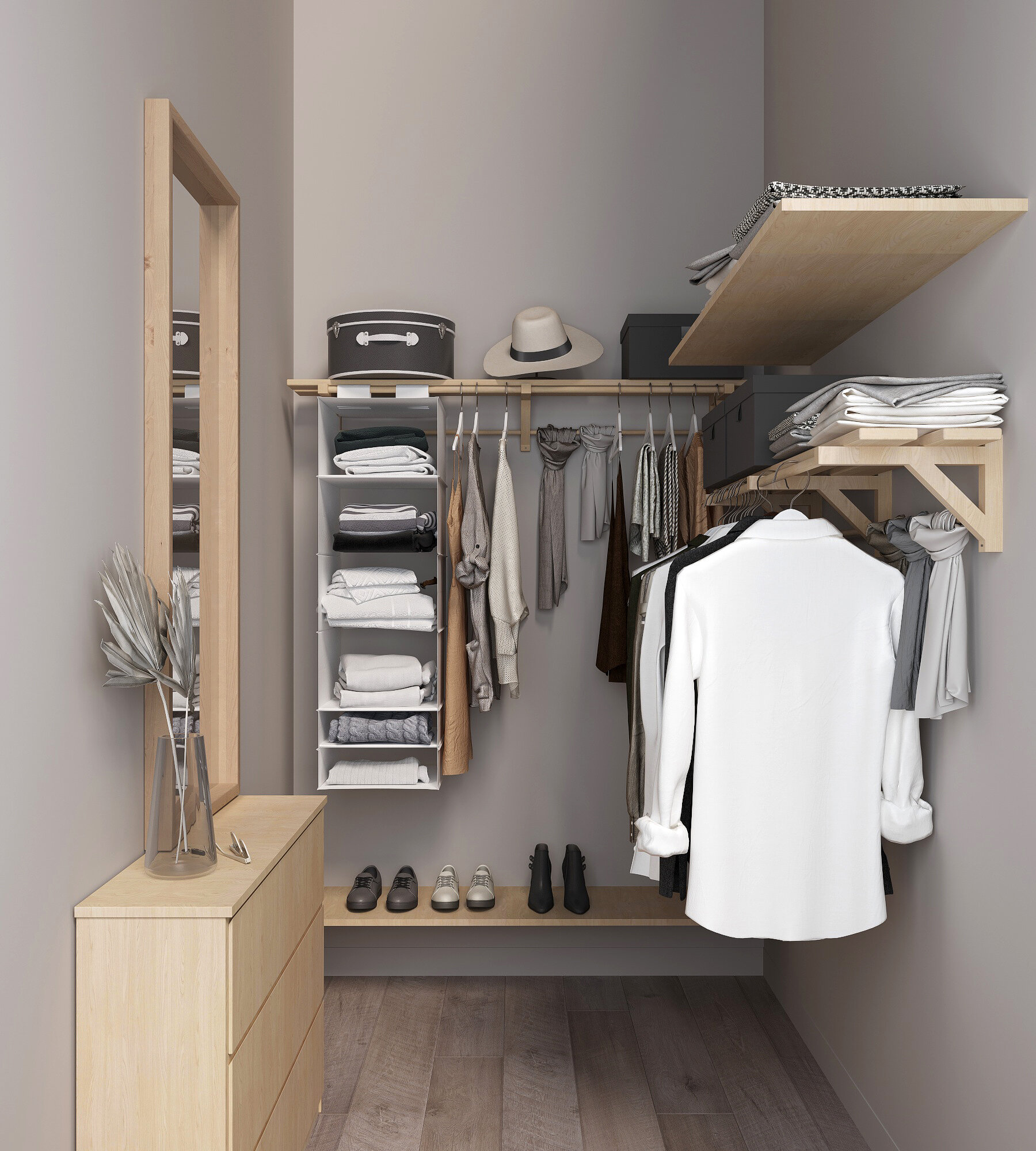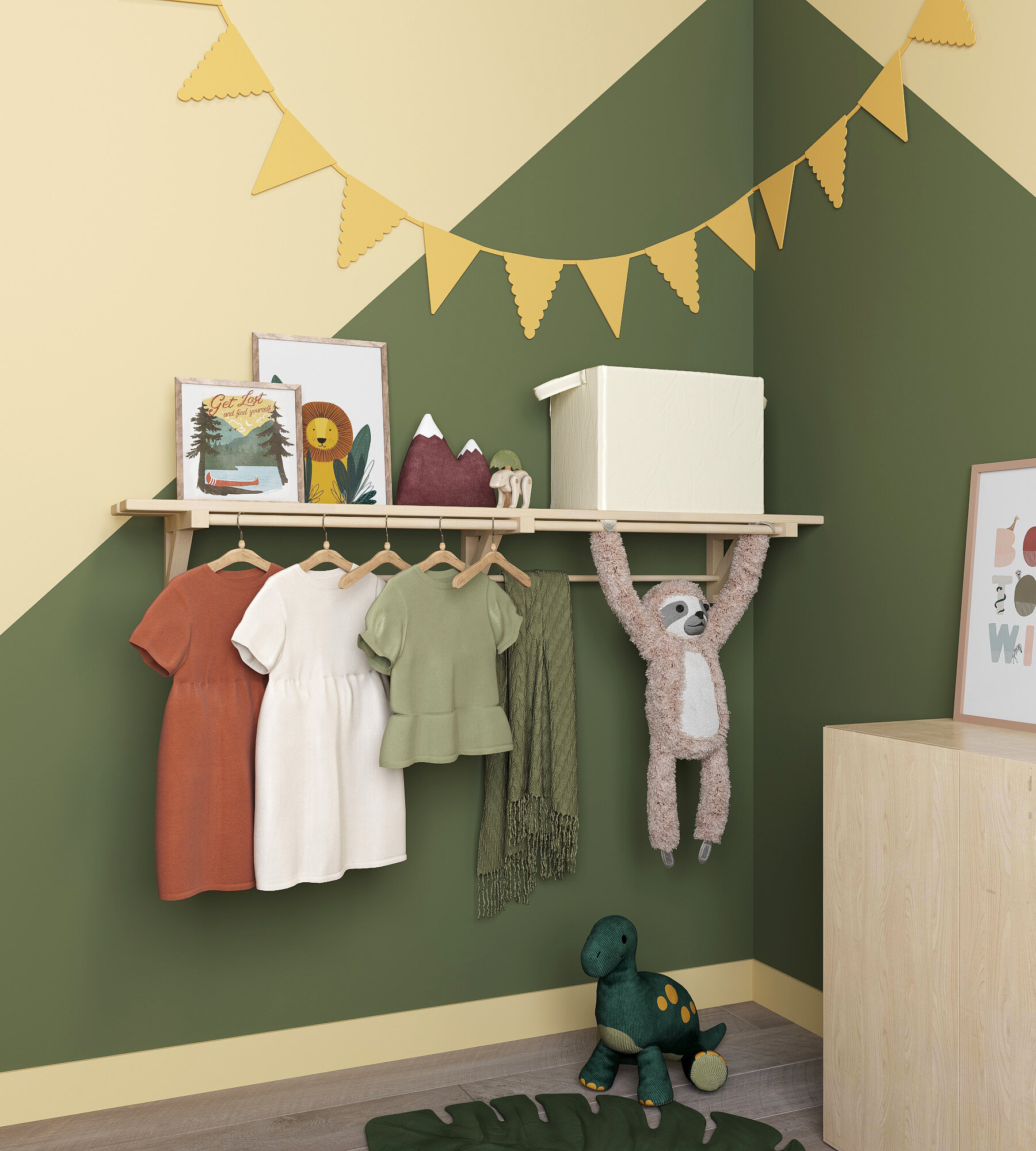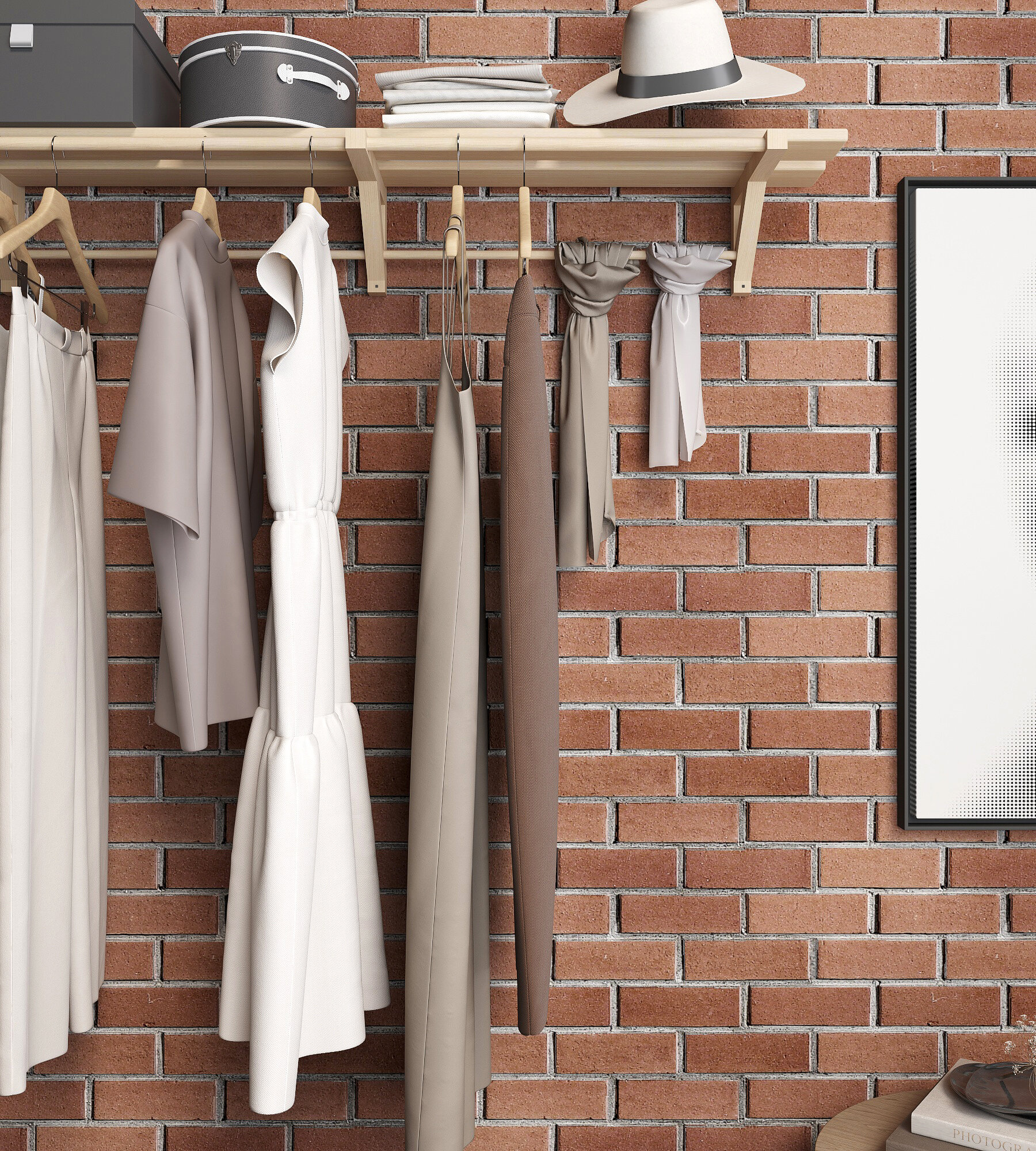 Полка-вешалка двойная c 4 штангами для одежды деревянная интересное: