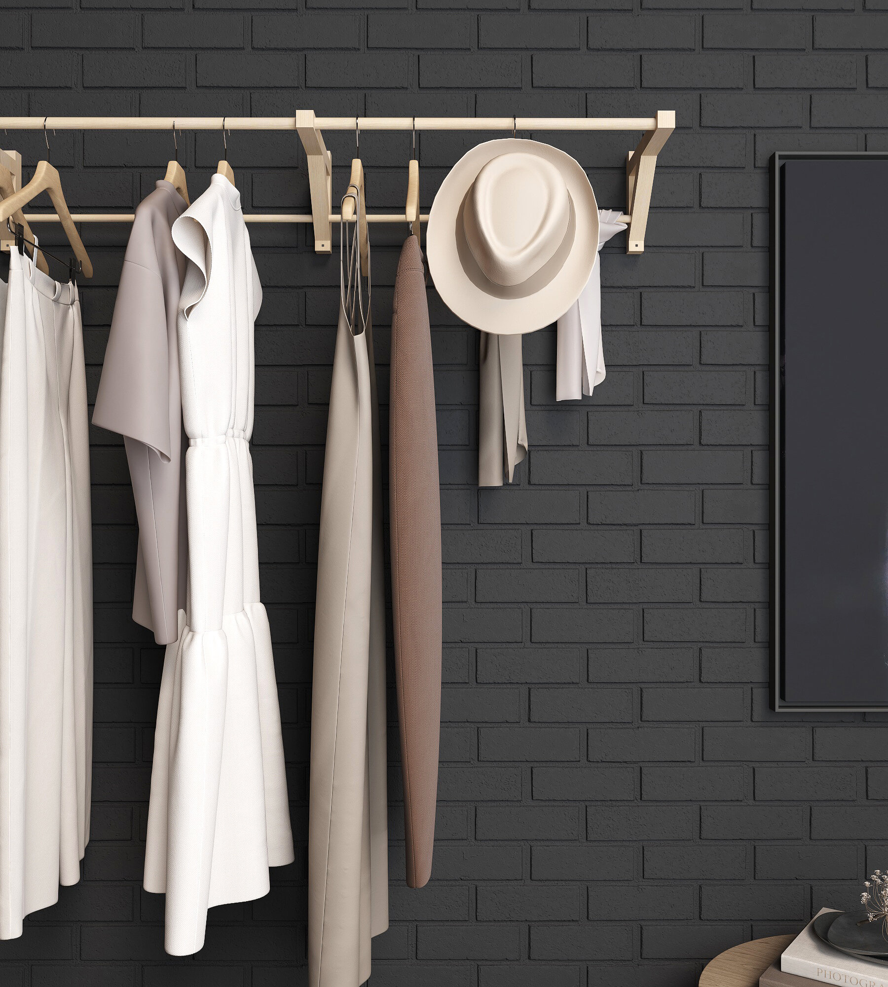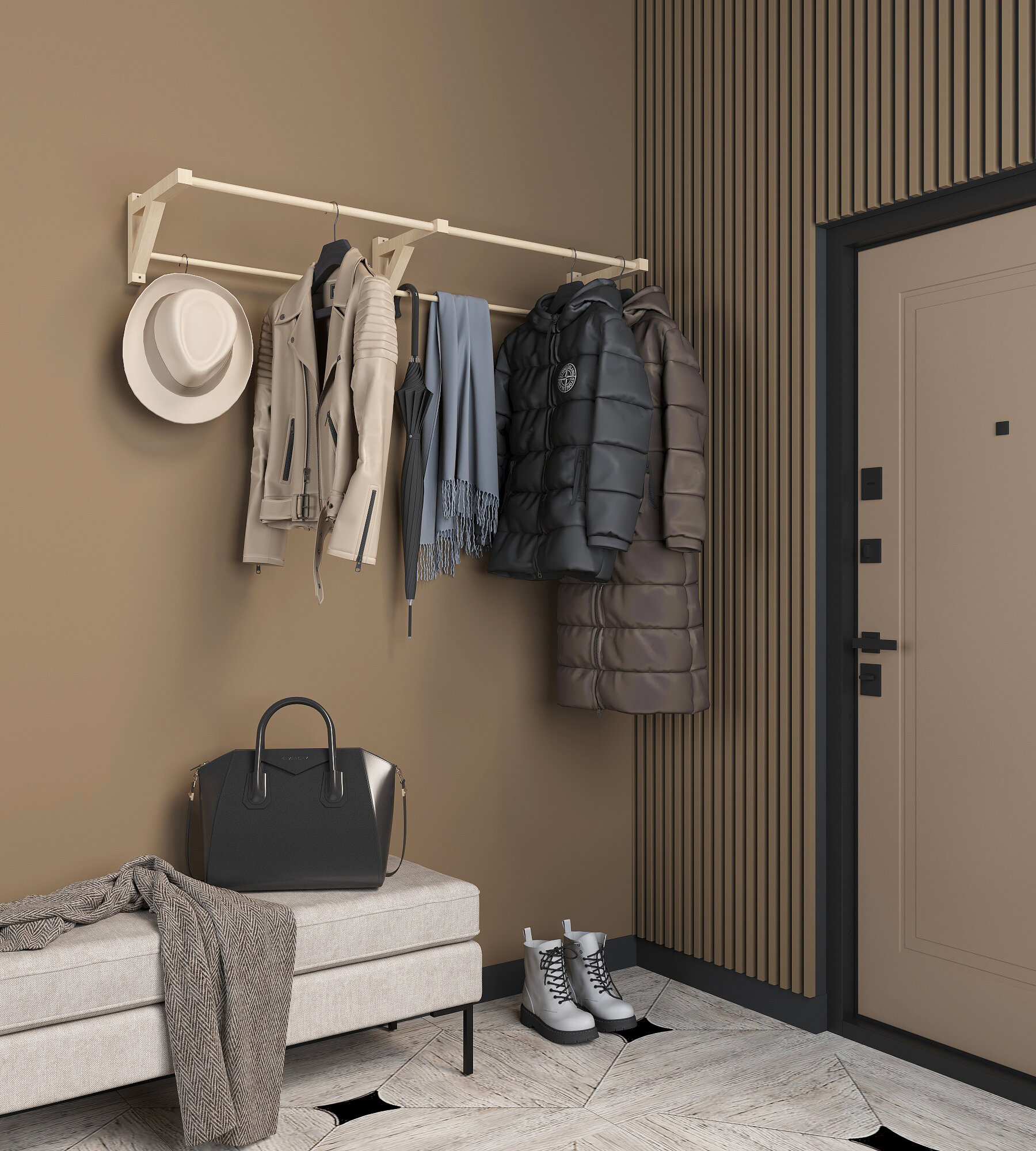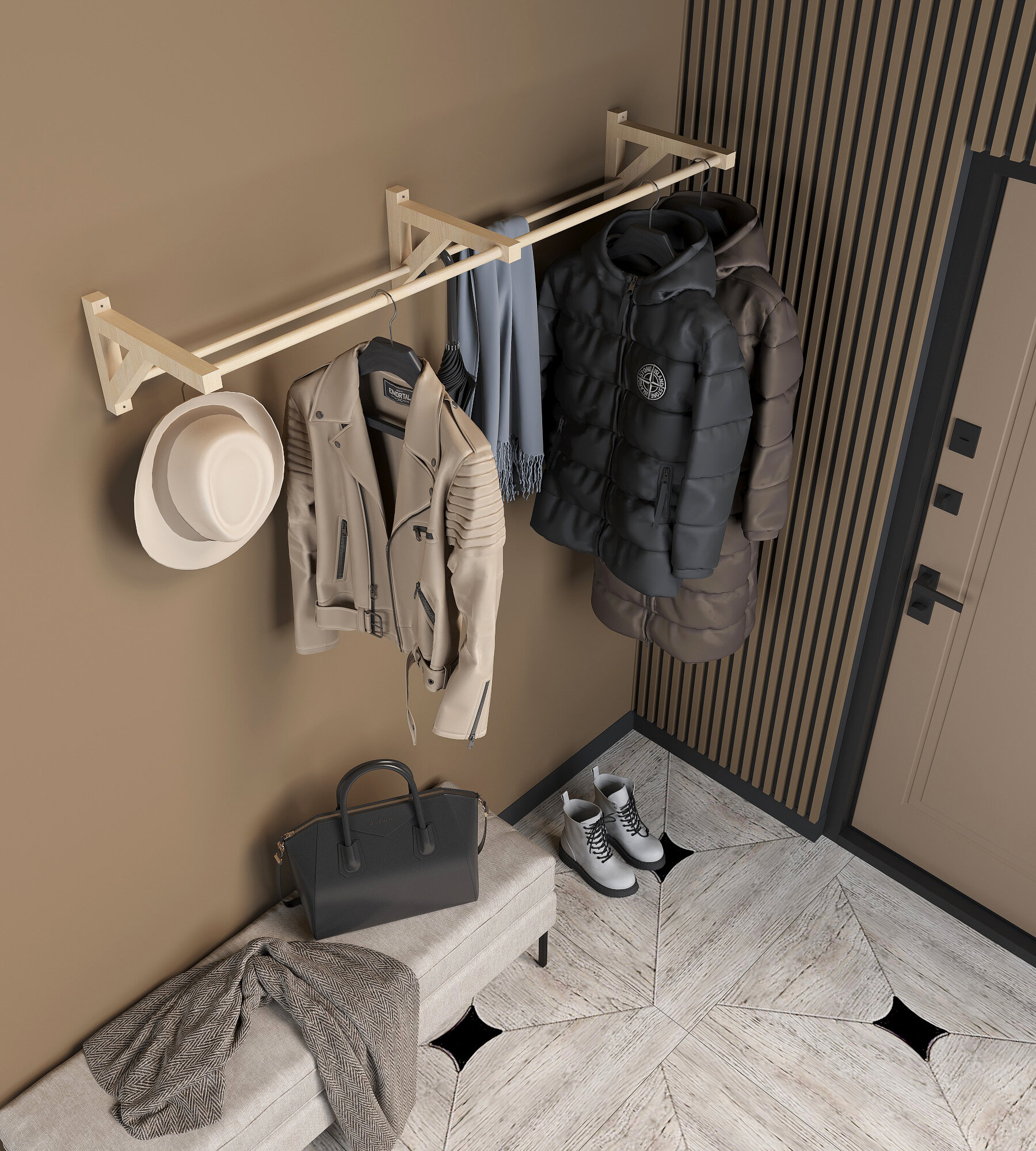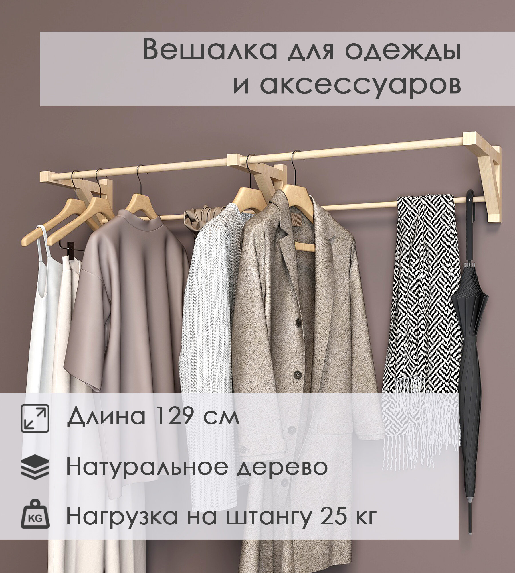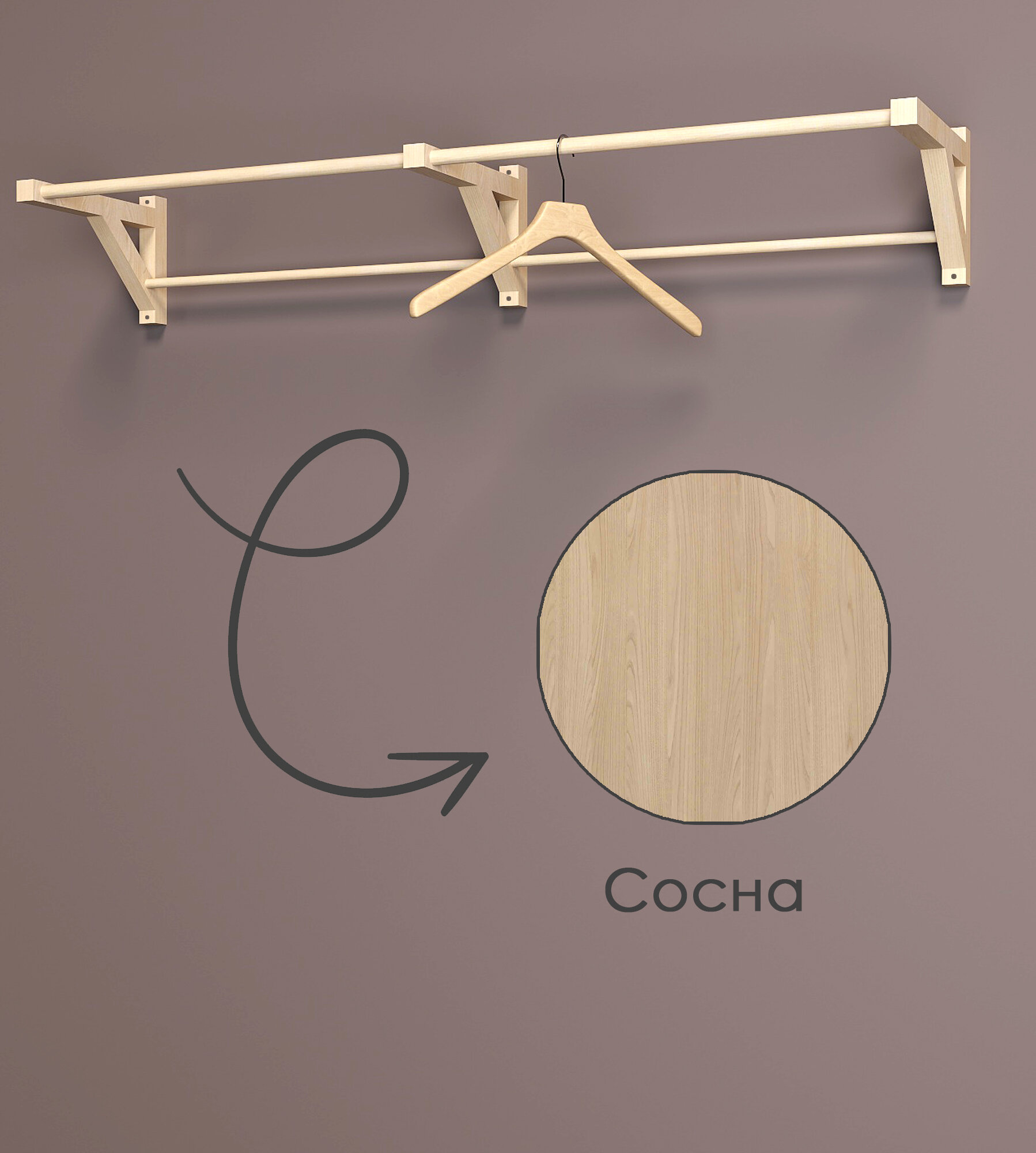 Полка-вешалка двойная c 2 штангами для одежды деревянная