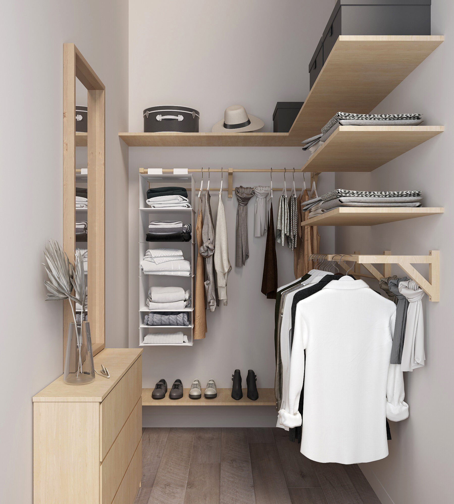 Полка-вешалка двойная c 4 штангами для одежды деревянная