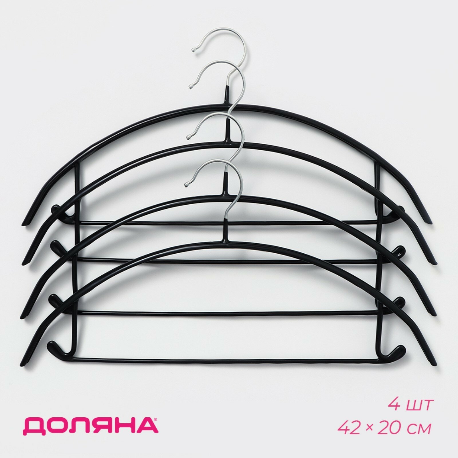 Купить Плечики для одежды антискользящие Доляна, 4 шт, 42×20 см, металл с ПВХ покрытием, цвет чёрный