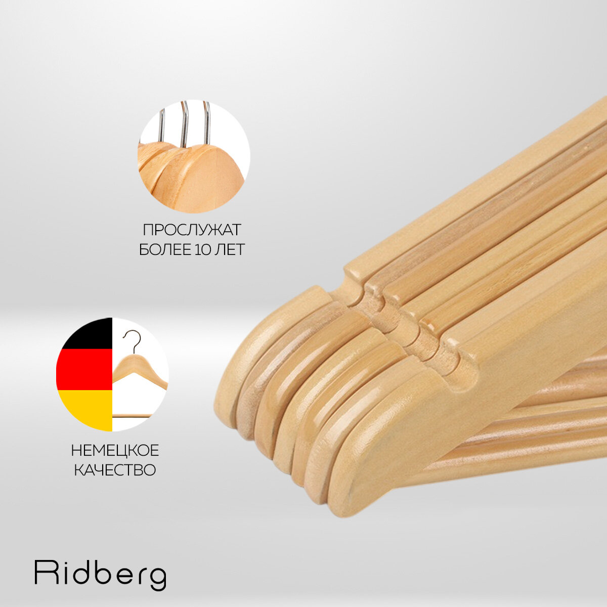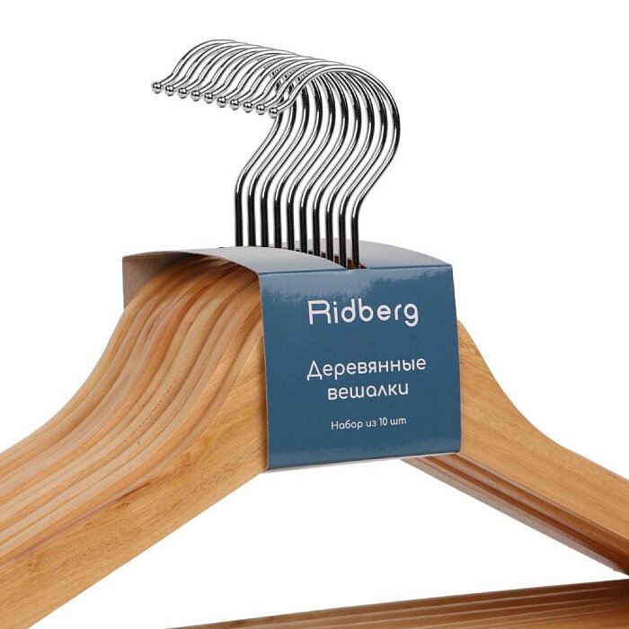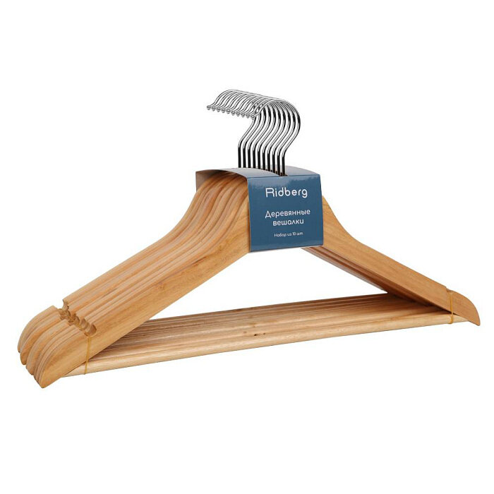 Вешалка-плечики для одежды Ridberg деревянные 10 шт. (White)